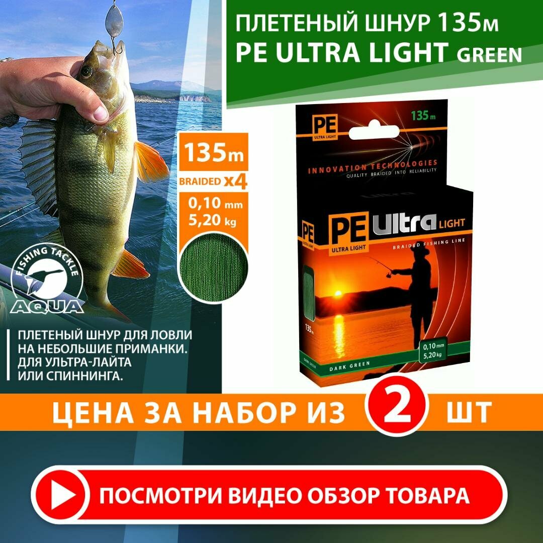 Плетеный шнур для рыбалки AQUA PE ULTRA LIGHT Dark Green 0,10mm 135m 2 шт. в комплекте