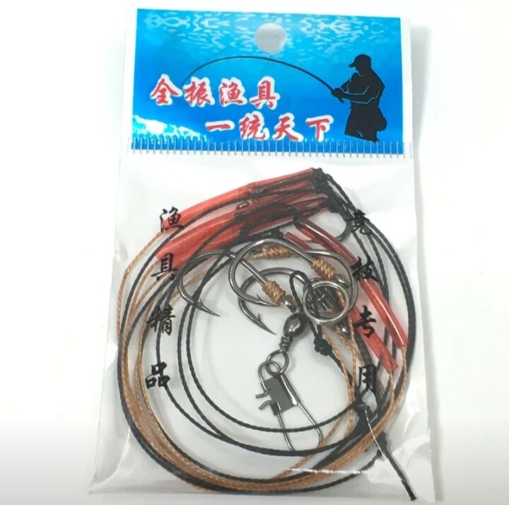 Монтаж рыболовный, снасть на карпа сазана, 5 крючков из высокоуглеродистой стали с поводками на леске (номер 6)