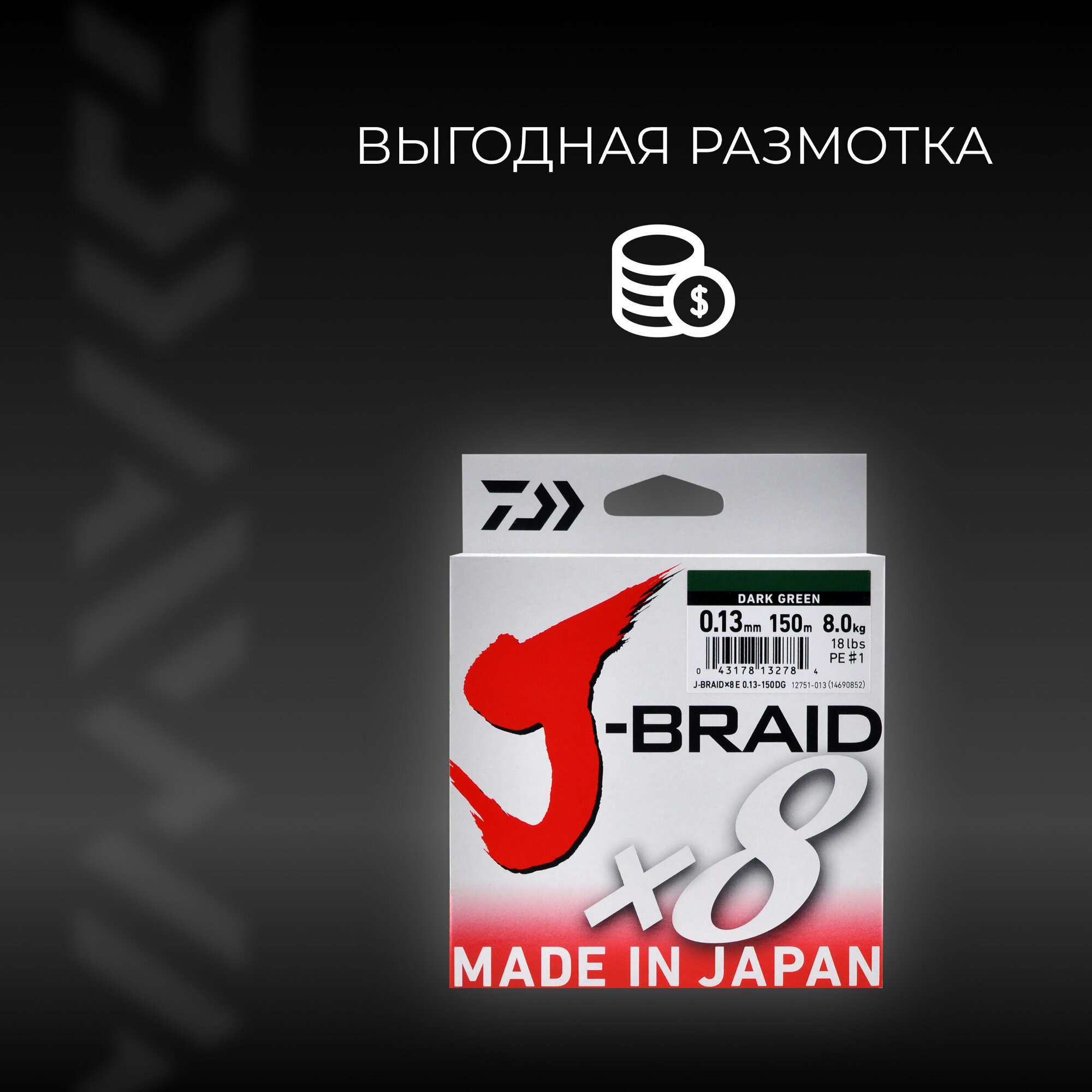 СохранитьШнур DAIWA J-Braid x8 150м Dark Green 0,13мм 8кг интересное: