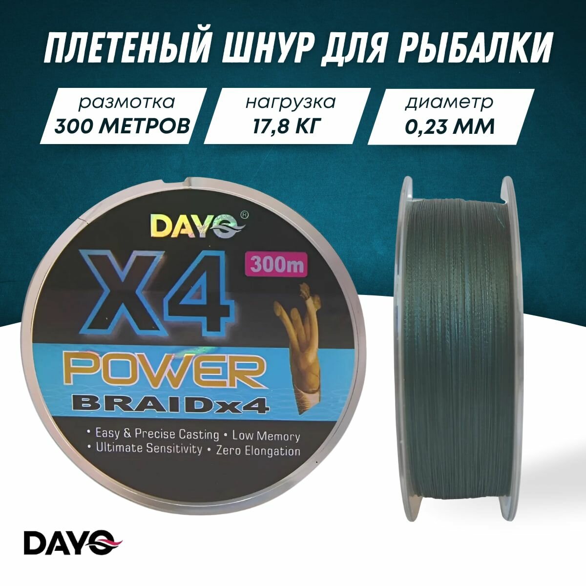 Шнур Dayo POWER BRAID X-4 Dark Green 300м 0.20мм 15.7кг