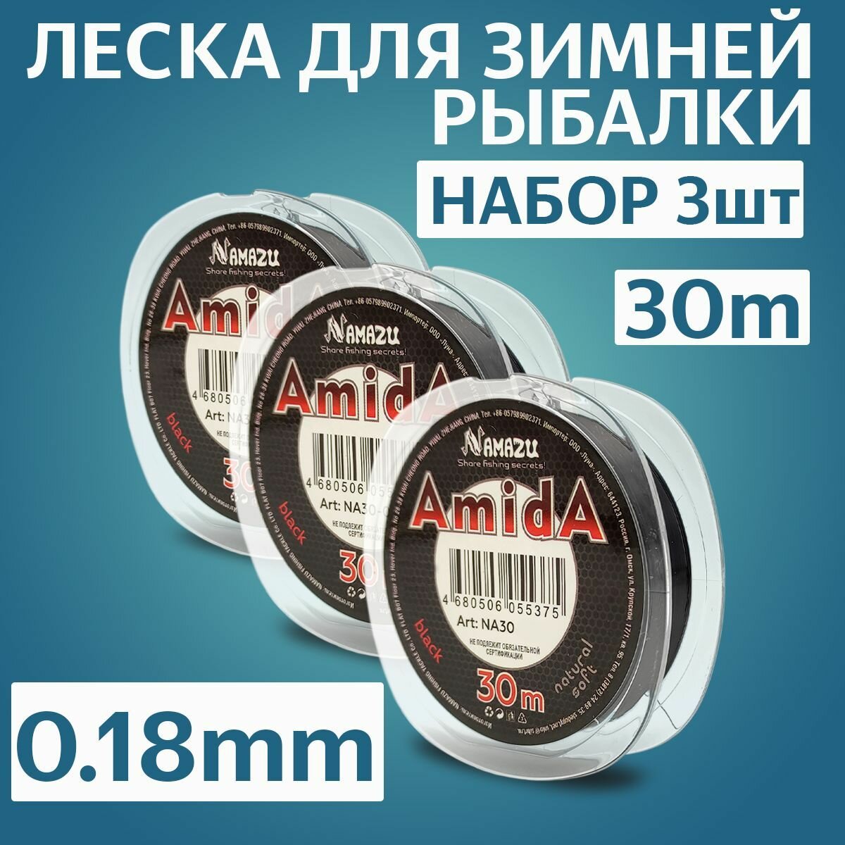 Леска зимняя черная, диаметр 0.18 mm, тест 4,2 кг. Набор 3 штуки, размотка 30 м. интересное: