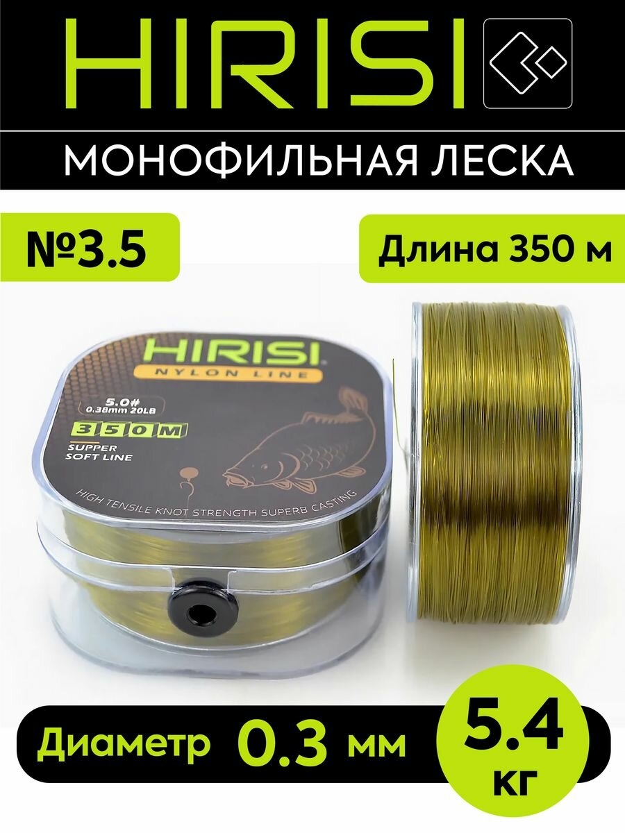 Леска для ловли карпа 0,35 мм (8,1 кг) 350 м зелёная, Монофильная, Нейлоновая, для рыбалки