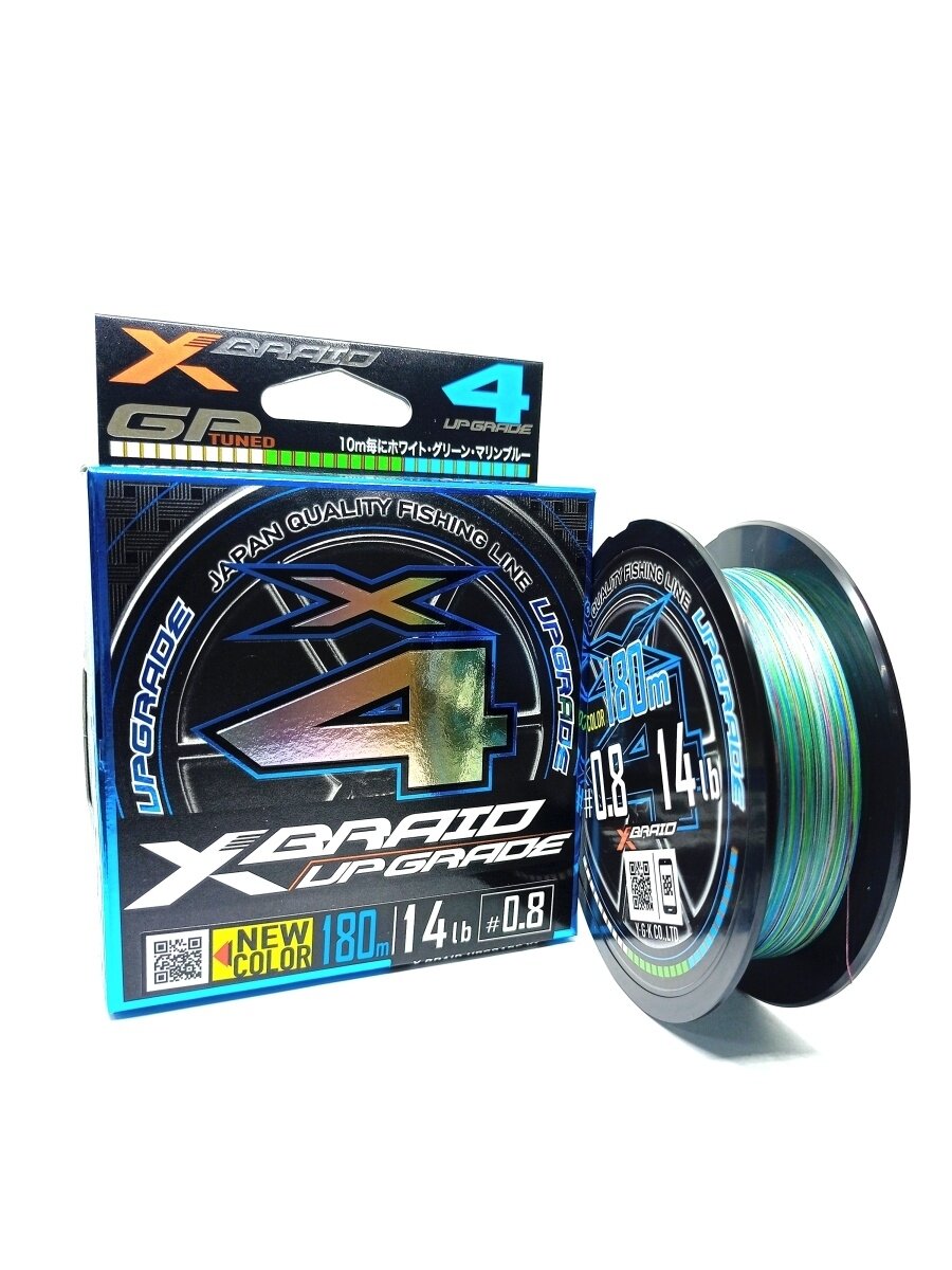 Шнур для рыбалки PE YGK X-BRAID Upgrade X4 3COLOR #0.8/14LB (180 м, 0.148 мм, 6.4 кг, цв. Мультиколор) / Новый EGI METAL