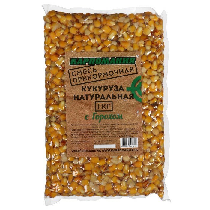 | Дополнительная информация | Для производства прикормочных смесей используем цельные зерна кукурузы кубанских производителей. Чтобы разнообразить состав, в смесь добавляем натуральные культуры: горох, коноплю и пшеницу, а также ароматизаторы и красители ведущих мировых производителей. Для улучшения качества и увеличения ее срока хранения, смесь проходит специальную термообработку в промышленных автоклавах. Сфера применения данной серии крайне велика и очень популярна у рыболовов. Можно использовать в качестве насадки, надевая по несколько зерен на крючок или волосяную оснастку, для ловли более крупной рыбы. Прикормочную смесь можно использовать самостоятельно, порционно подбрасывая в зону ловли или в составе других прикормок, цельным или дробленым зерном. Выпускается в пакетах по 1 кг и 4 кг; сезон: осень, лето, весна |
