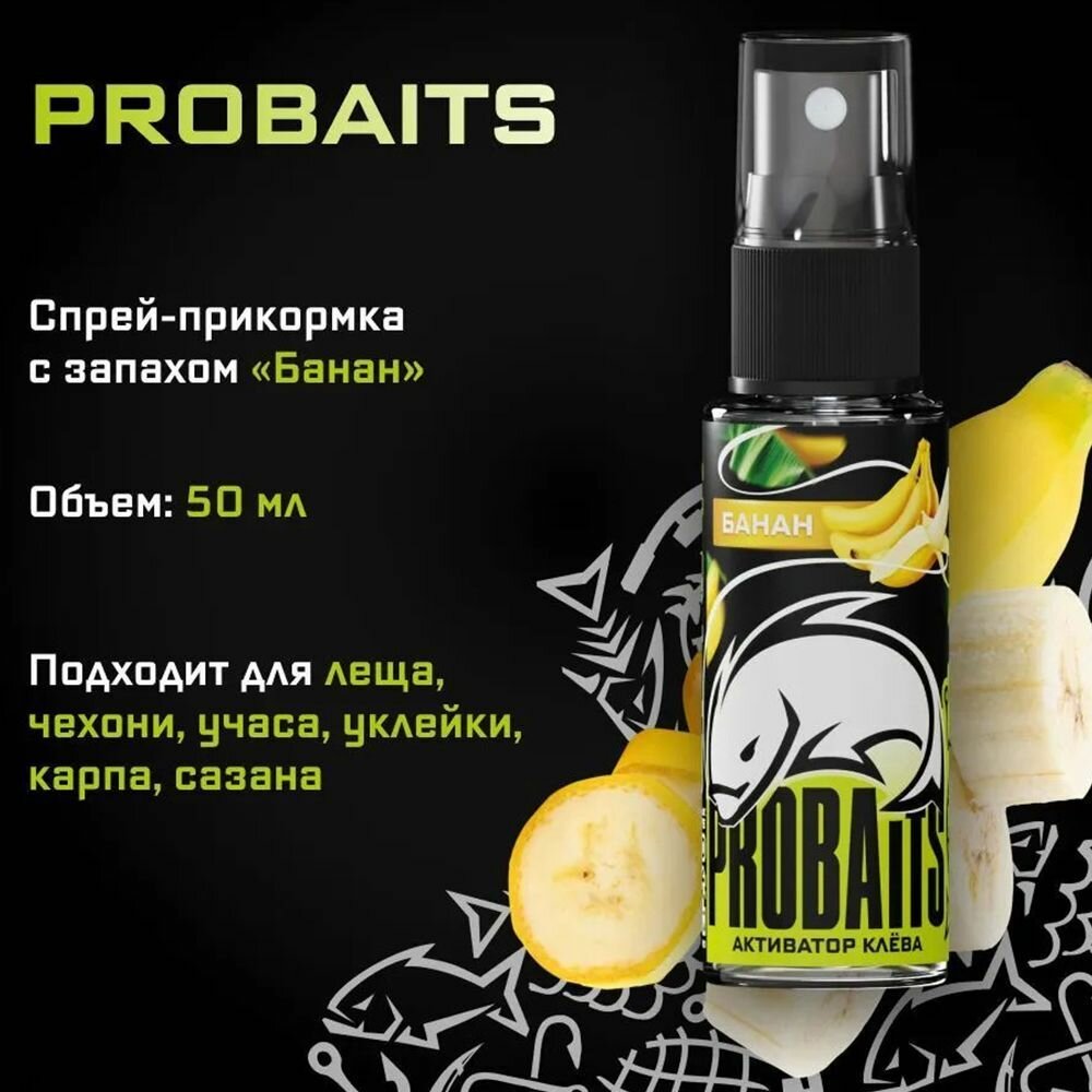 Активатор клёва PROBAITS, 50 мл, Банан Спрей-аттрактант, ароматизатор для рыбалки интересное: