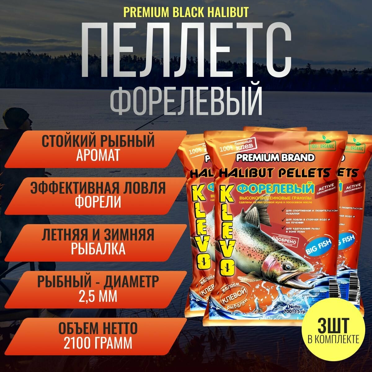 СохранитьНабор 3 шт. Пеллетс форелевый 2,5 мм - 2100 гр Klevo BLACK HALIBUT рыбный вкус. Прикормка на форель, осетра, карпа. Приманка пелетс для рыбалки интересное: