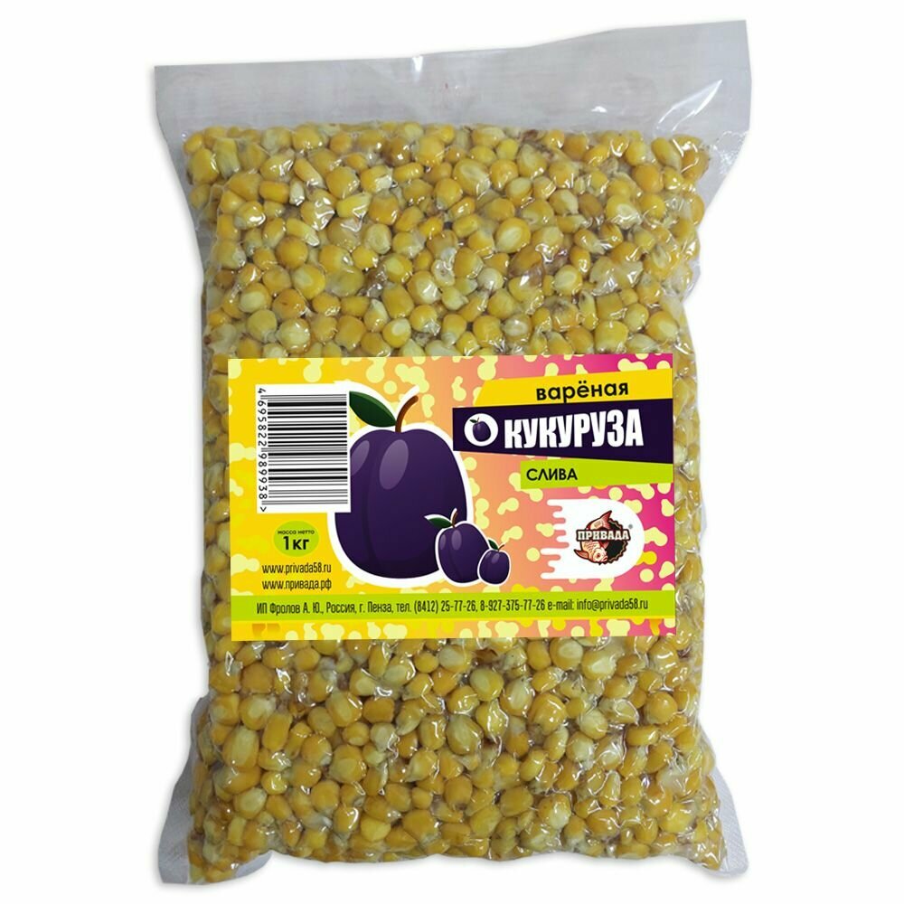 Купить Кукуруза пропаренная привада (прикормочная смесь) в вакууме для рыбалки, слива, 1кг