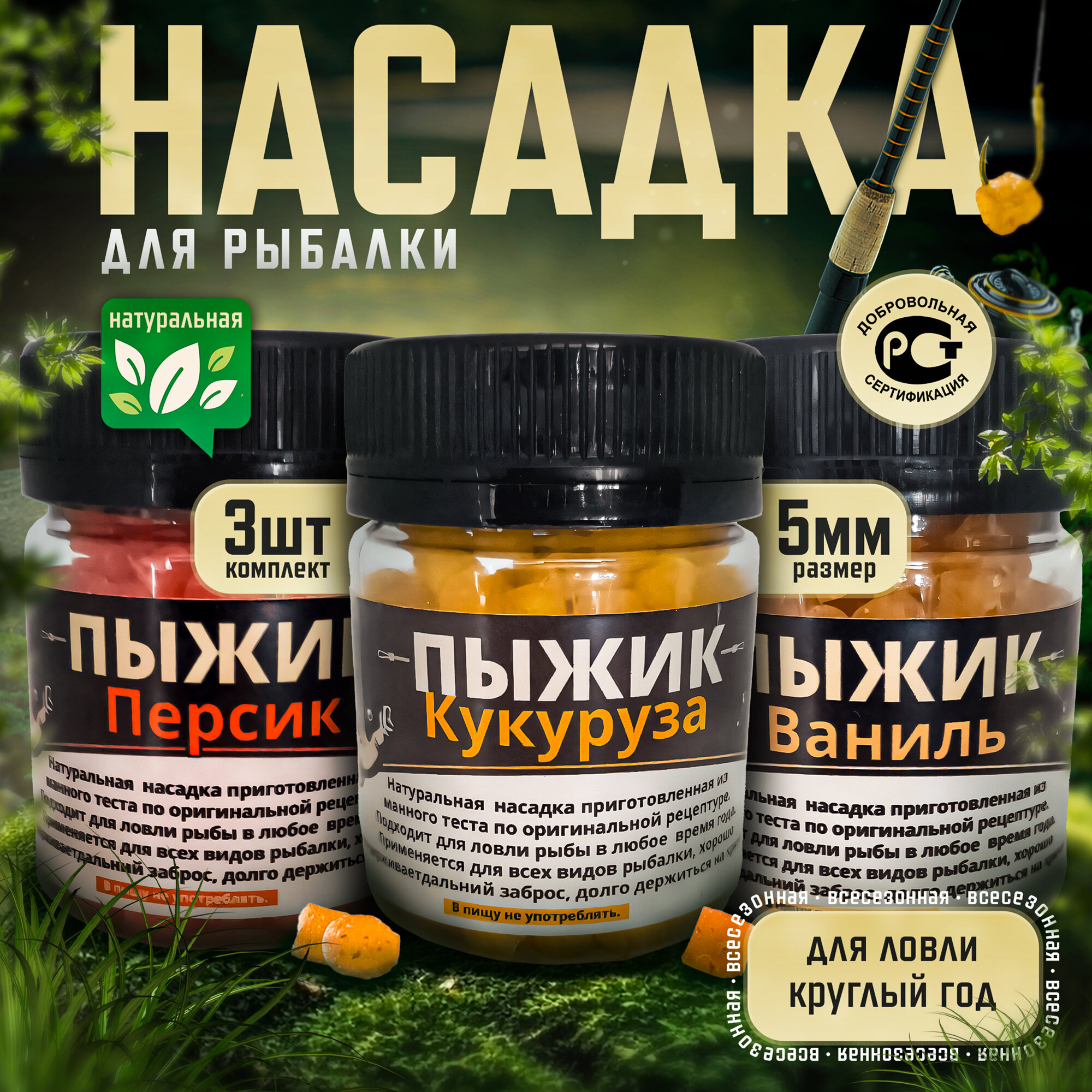 Купить Рыболовная Насадка "Пыжик" , 5мм /Рыболовный комплект Микс из 3 штук. Вкус Персик,Ваниль,Кукуруза,/ Насадка на крючок/ для рыбалки/