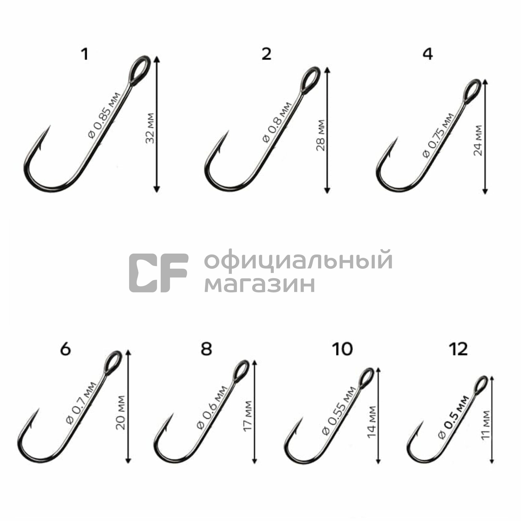 Одинарный крючок CF Round bent hook №6 10 шт