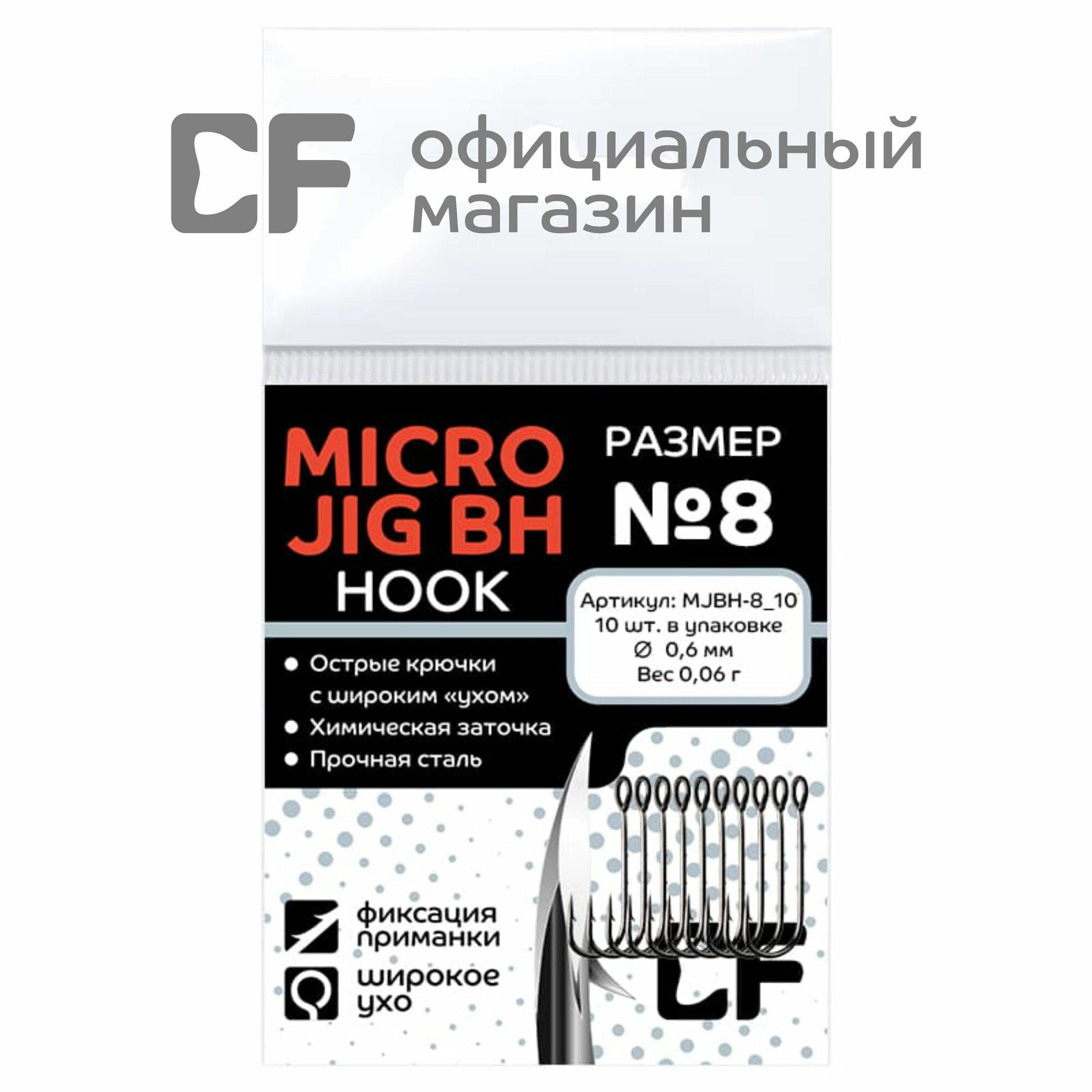 Одинарный крючок CF Micro Jig Joint Hook №8 10 шт
