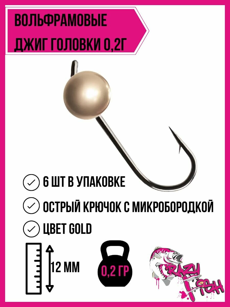 Вольфрамовая джиг-головка Crazy Fish 0,2г, цвет золото, 6шт.