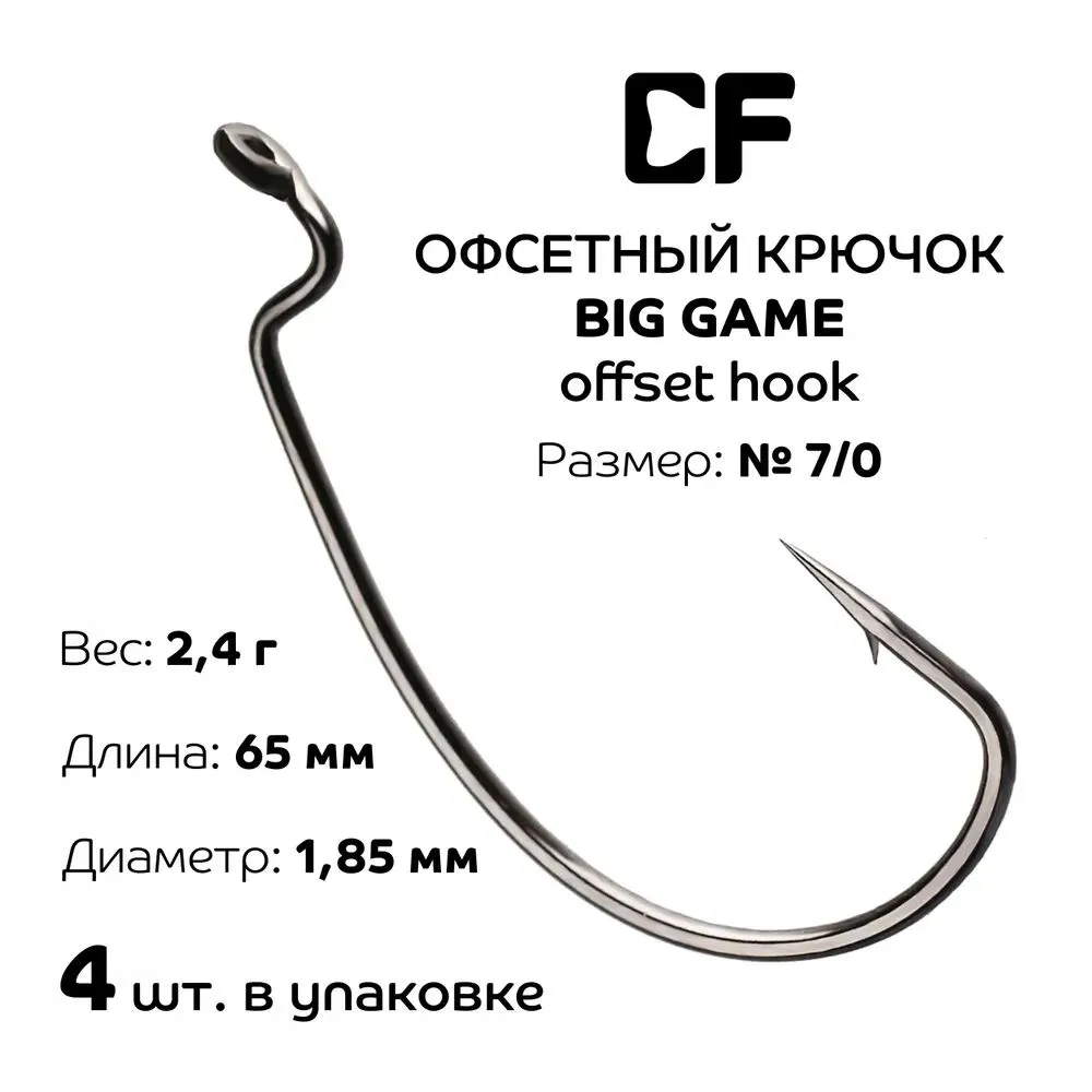 Крючки офсетные Crazy Fish Big Game Offset Hook №7/0 длина 65 мм 4 шт