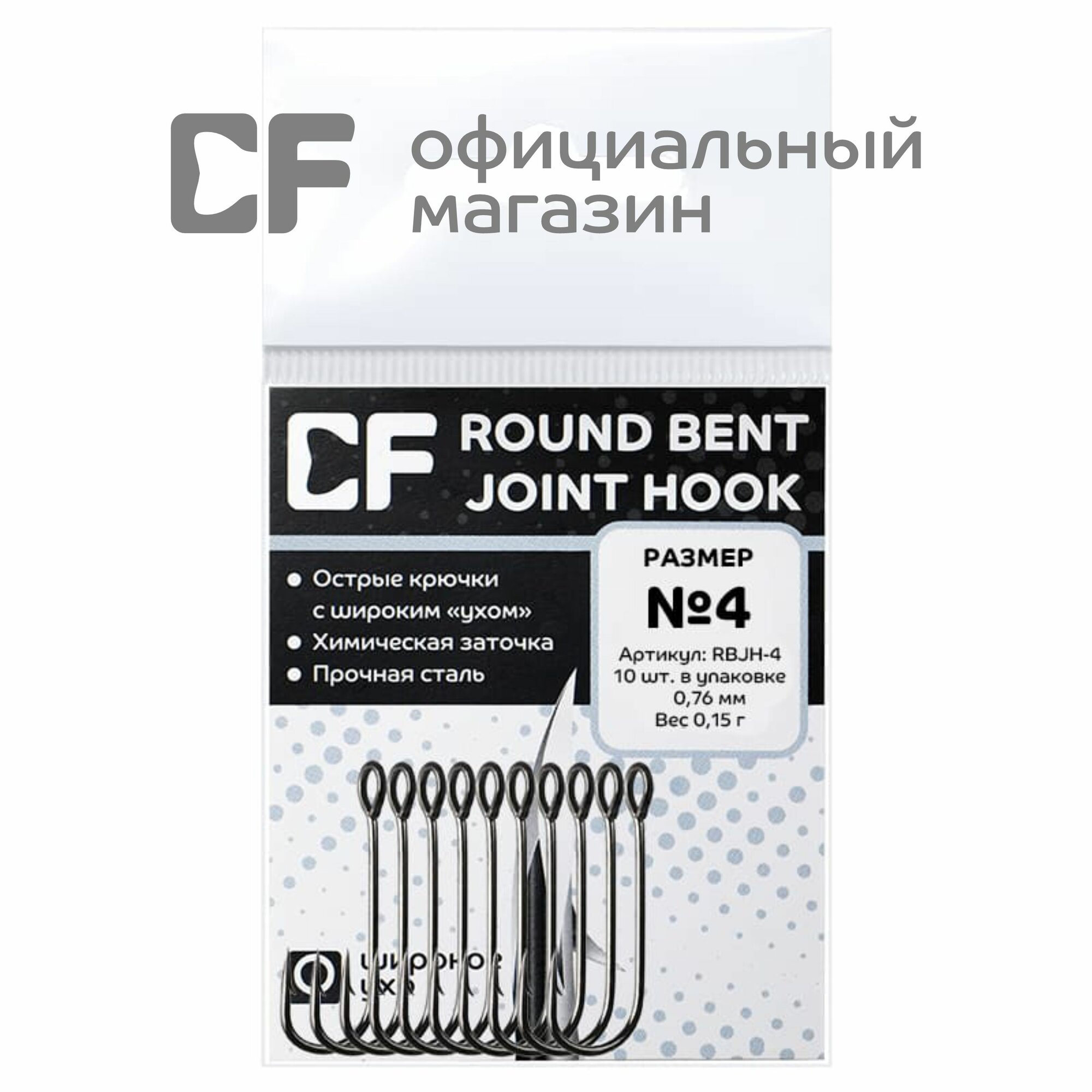 Одинарные крючки CF Round Bent Joint Hook №10 15шт.