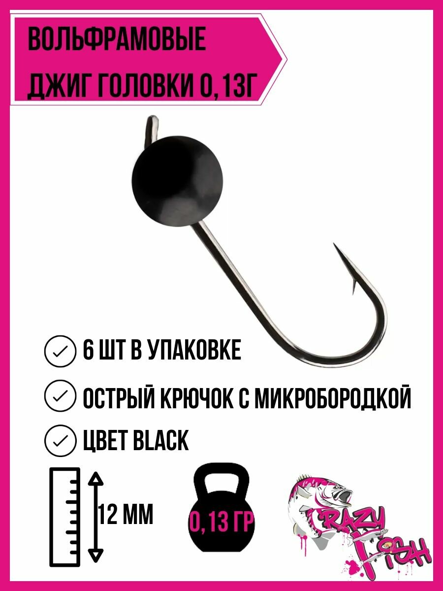 Купить Джиг-головка вольфрамовая Crazy Fish 0,13 г цвет черный 6 шт.