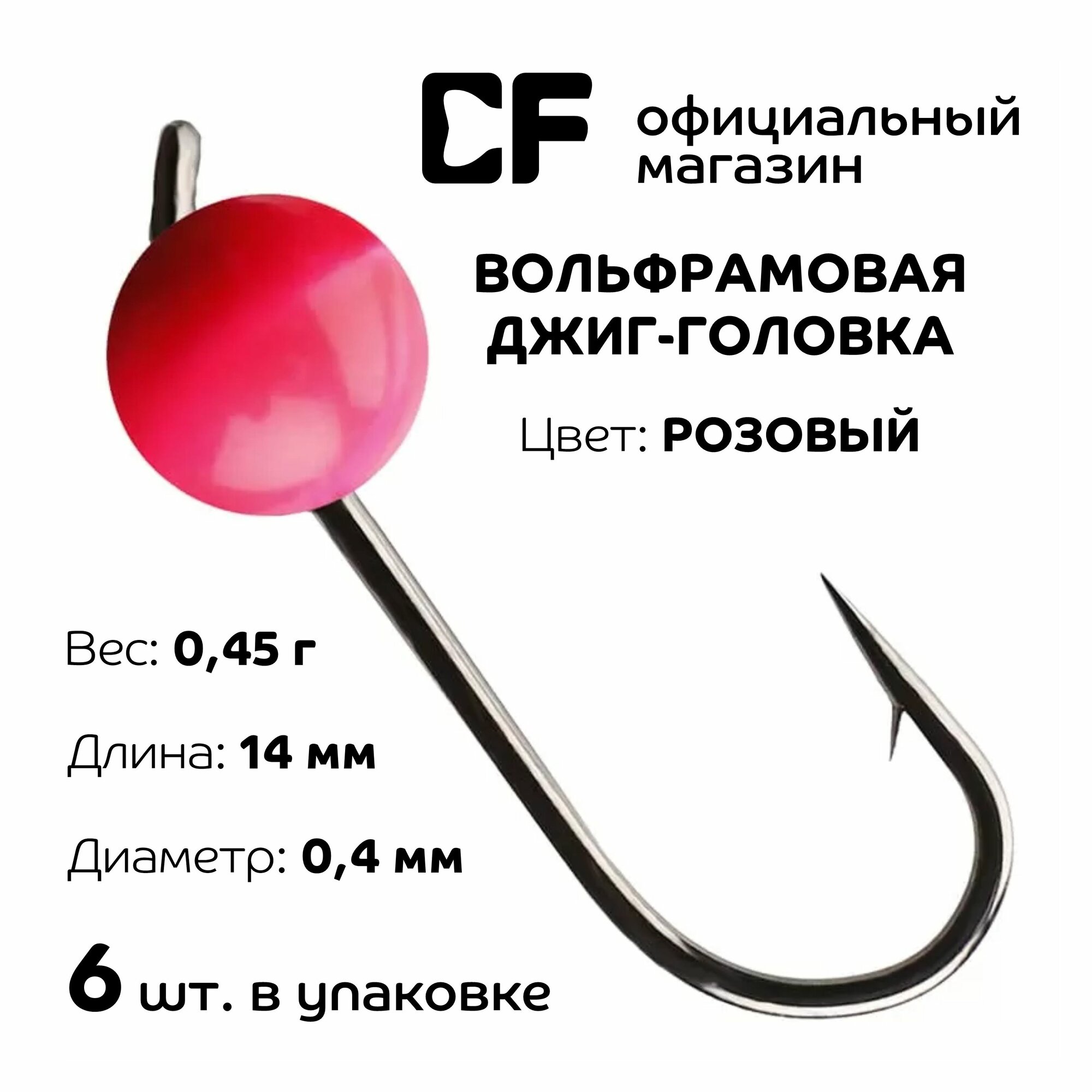 Купить Вольфрамовая джиг-головка CF Company, 0.45г, розовый, 6 шт.