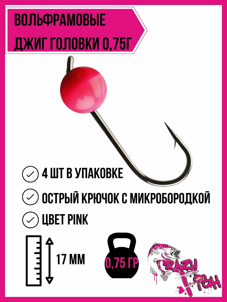Купить Джиг-головка вольфрамовая Crazy Fish 0.75 гр, цв. Розовый (4 шт)