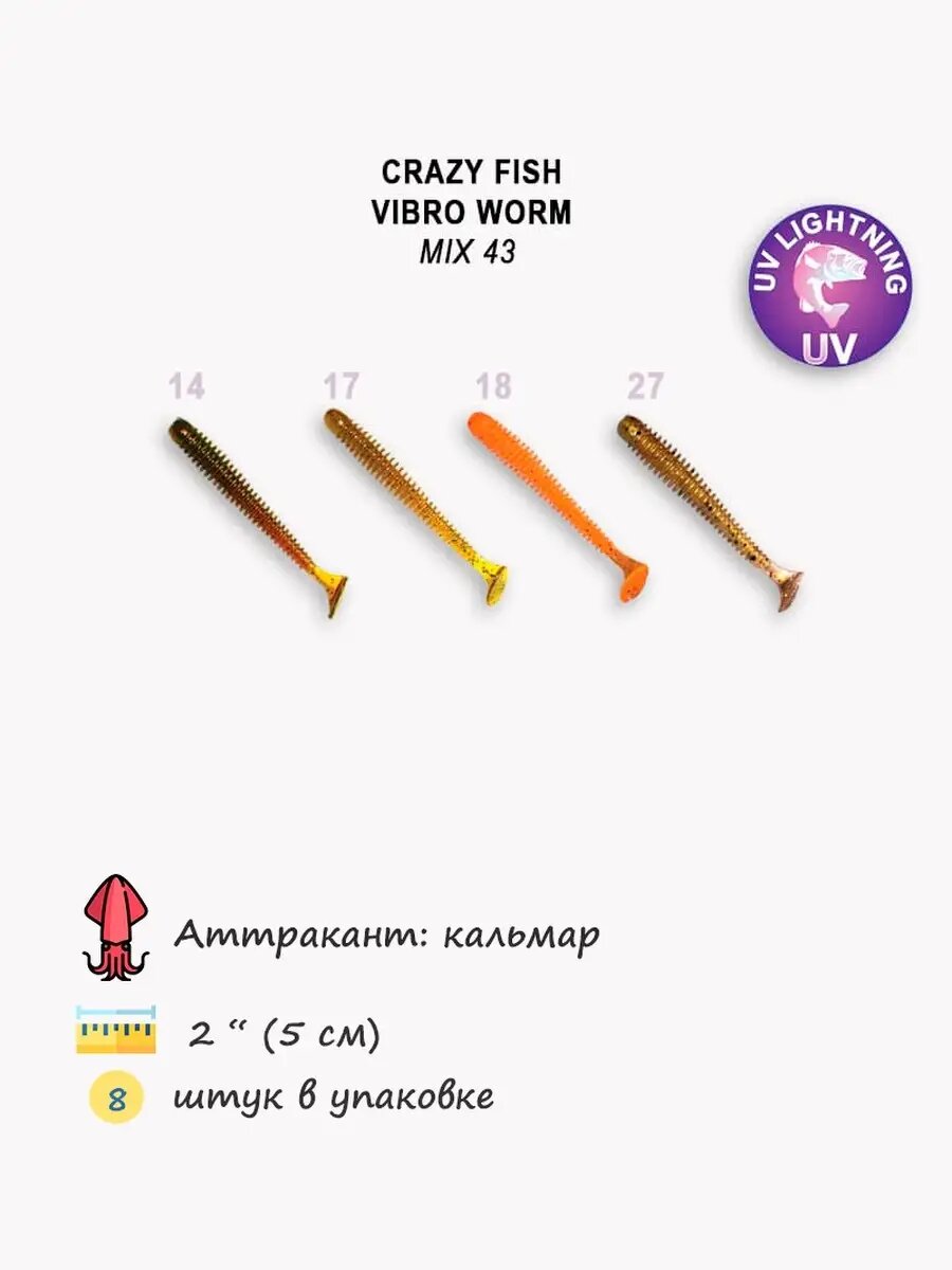 Силиконовая приманка мягкая съедобная Crazy Fish Vibro Worm 2" 50 мм 3-50-4-1 8 шт.
