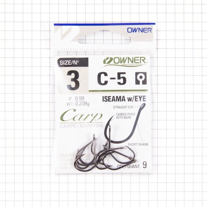 Крючок рыболовный OWNER ISEAMA w/EYE Carp C-5 № 3 BC (уп.9шт)