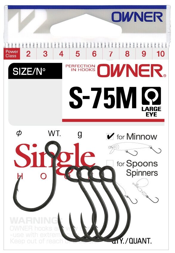 Крючки рыболовные Owner S-75M (51642) № 02 (6шт), одинарные