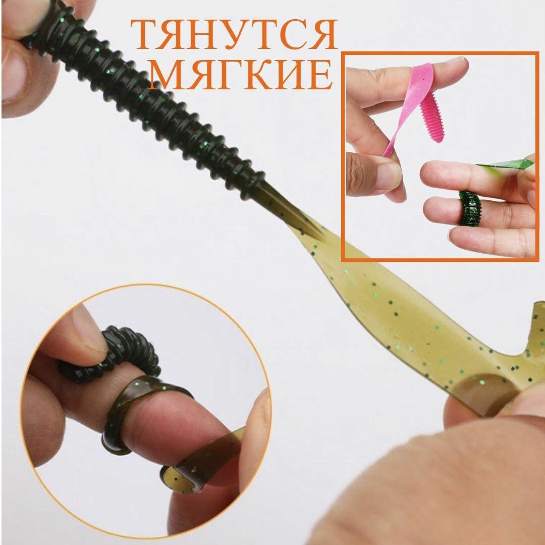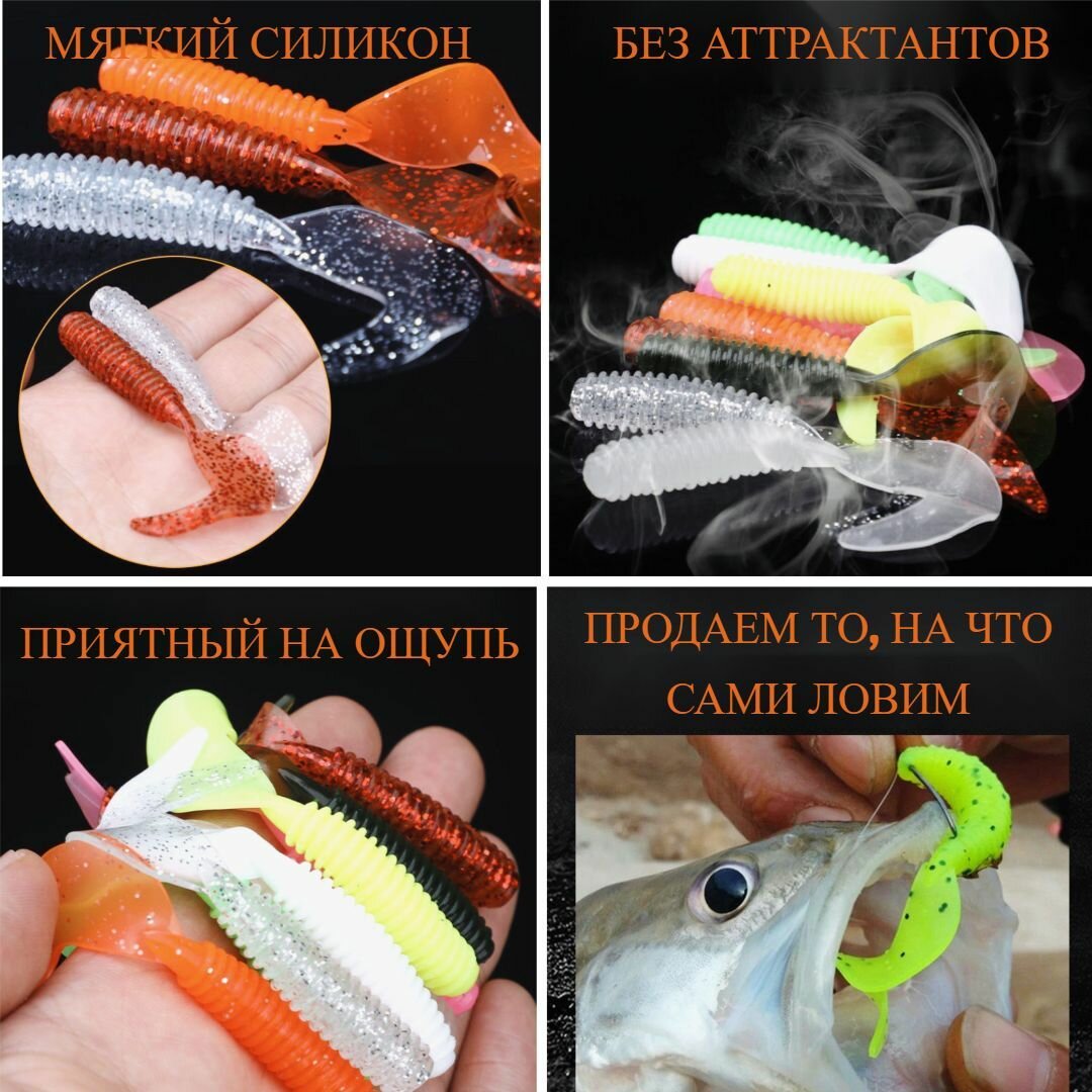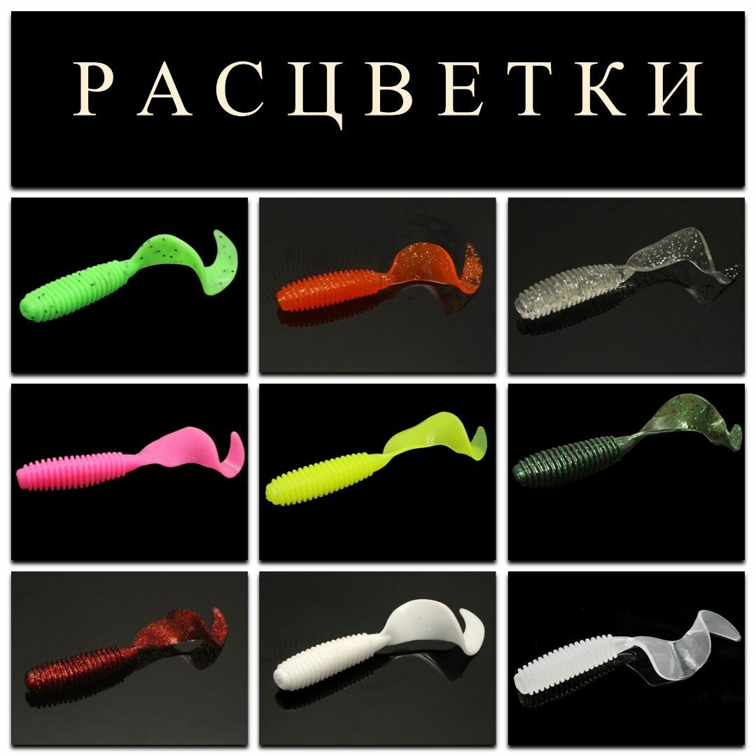 Приманки мягкие виброхвост твистер разноцветные в наборе