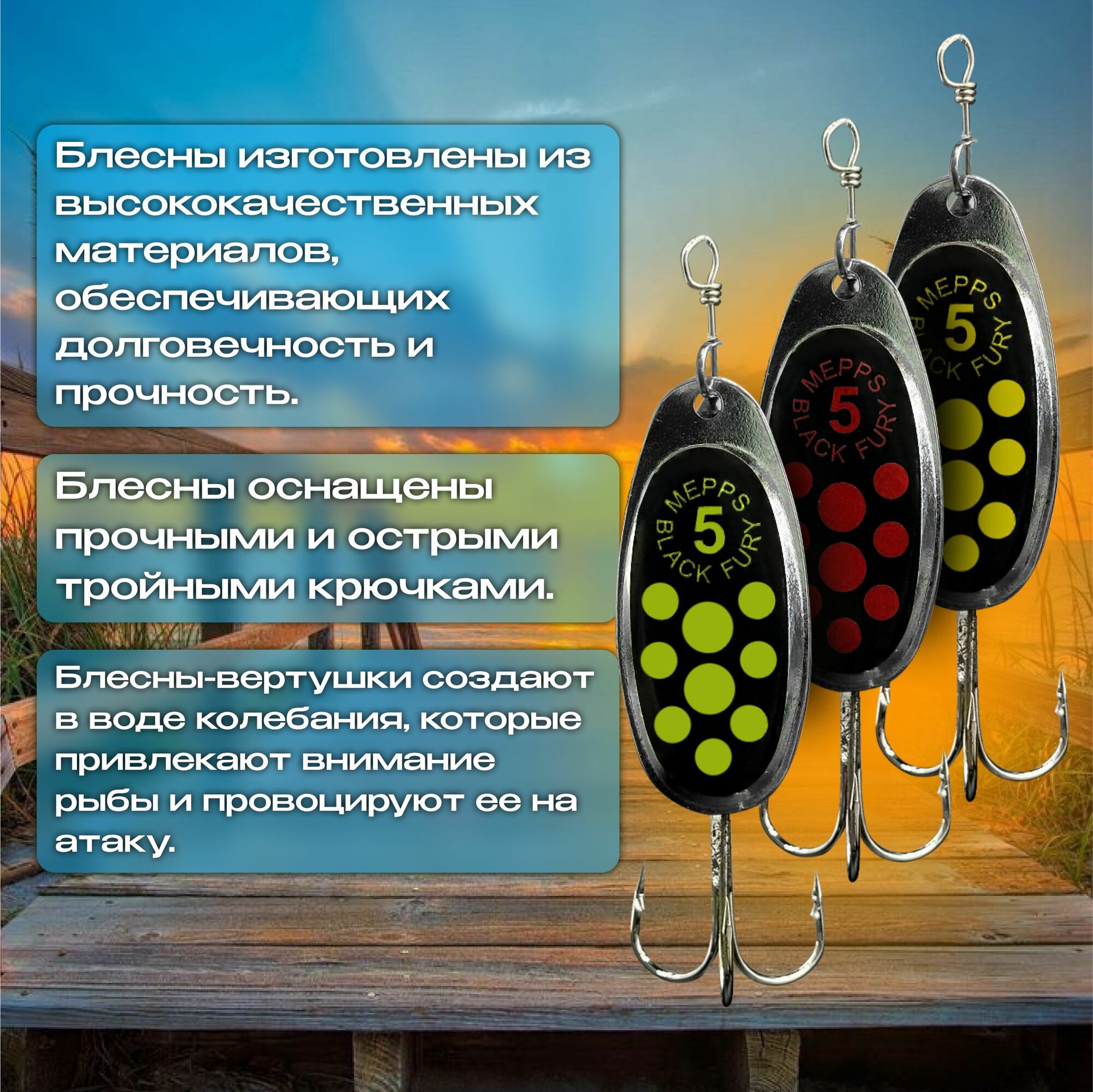 Набор блесен вертушек Mepps BLACK FURY & AGLIA № 5(12-13гр)Блесна вертушка интересное: