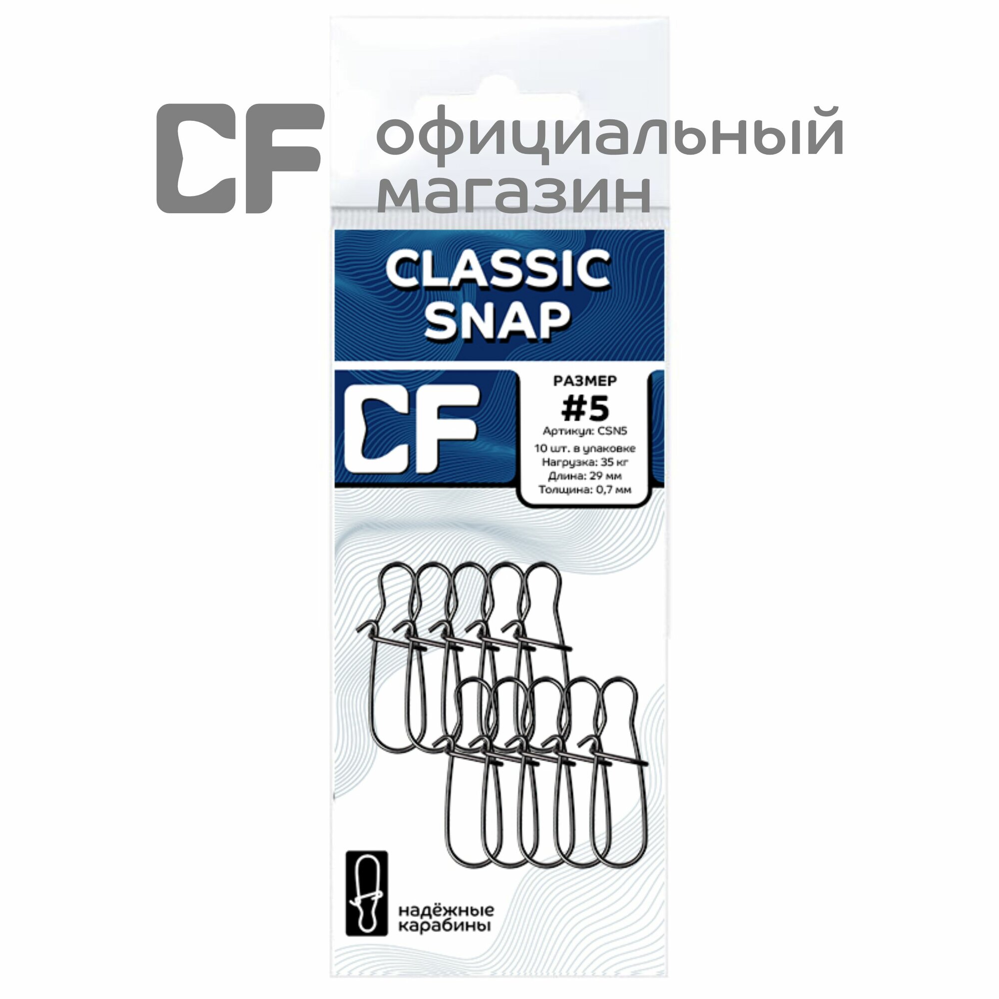 Карабин CF Classic snap #6, 33.5мм, 45кг, 5шт. застежка, для рыбалки.