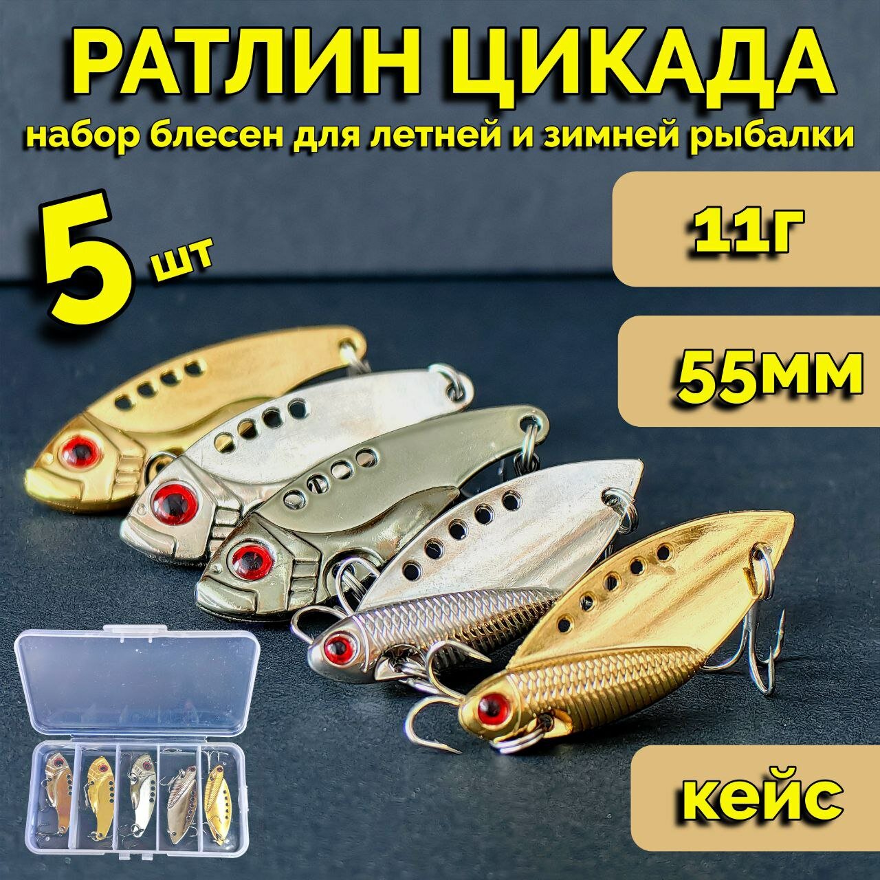 Приманка для рыбалки цикада набор блесен 5 шт в кейсе интересное: