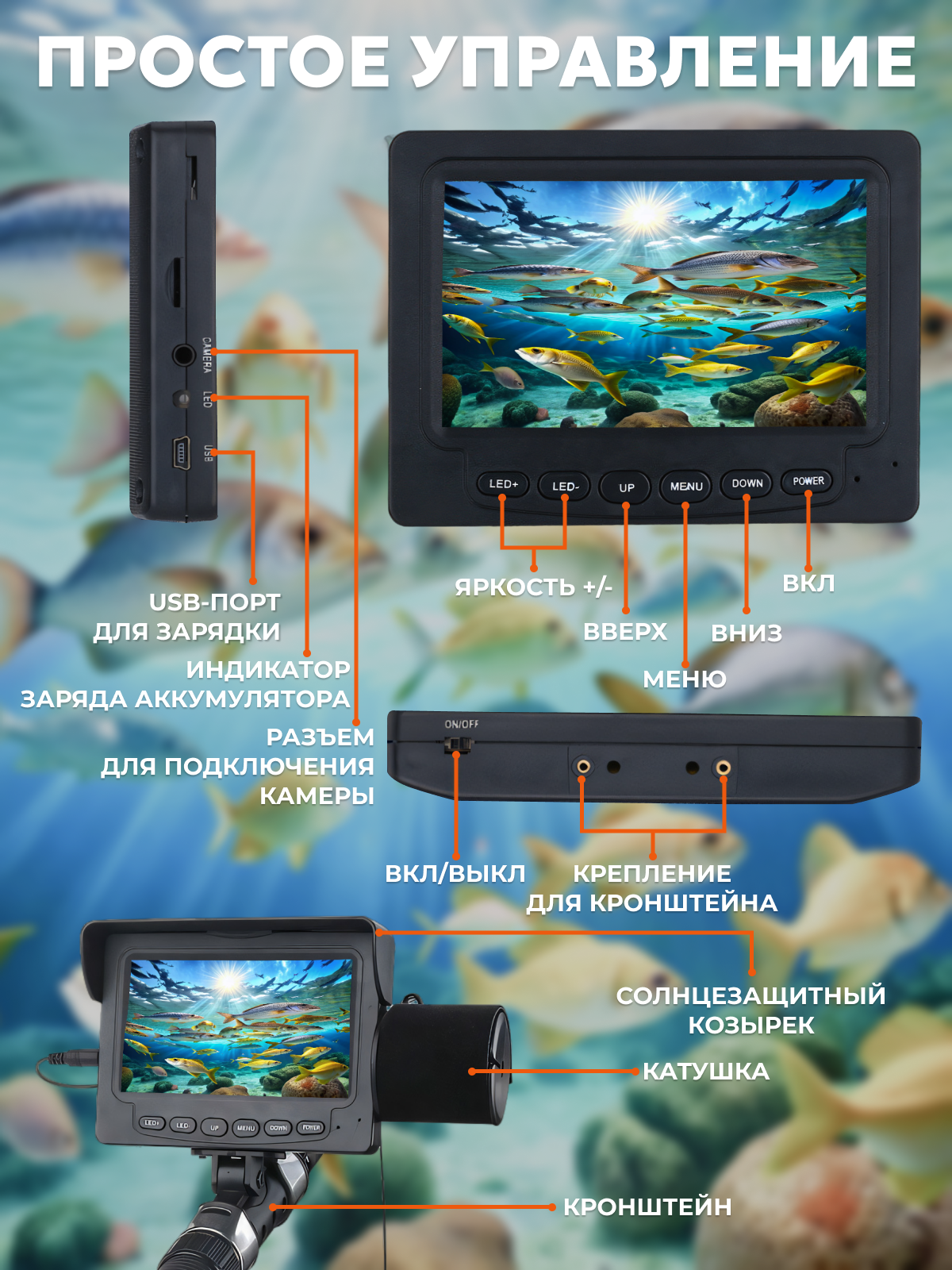 Камера для рыбалки подводная Gamwater HD 4.3", в комплекте с батареей 5000 мАч
