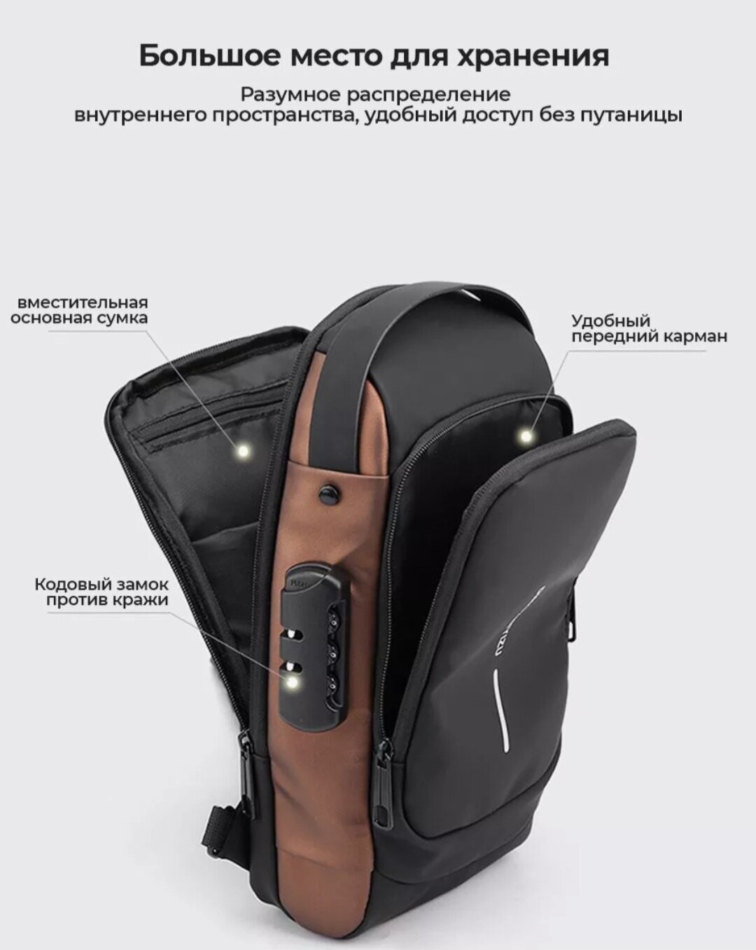 | Конструктивные особенности | USB-выход / верхний карман / мягкий / одна лямка |