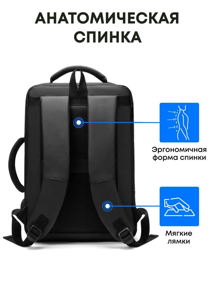 Рюкзак мужской, городской, для ноутбука, трансформер с боковой ручкой и USB-портом интересное: