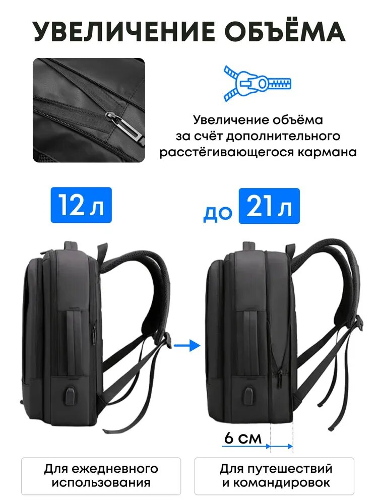 | Конструктивные особенности | USB-выход / анатомический / антивор / вентилируемые лямки / вентиляция спины / внутренний карман / две лямки / непромокаемое дно |