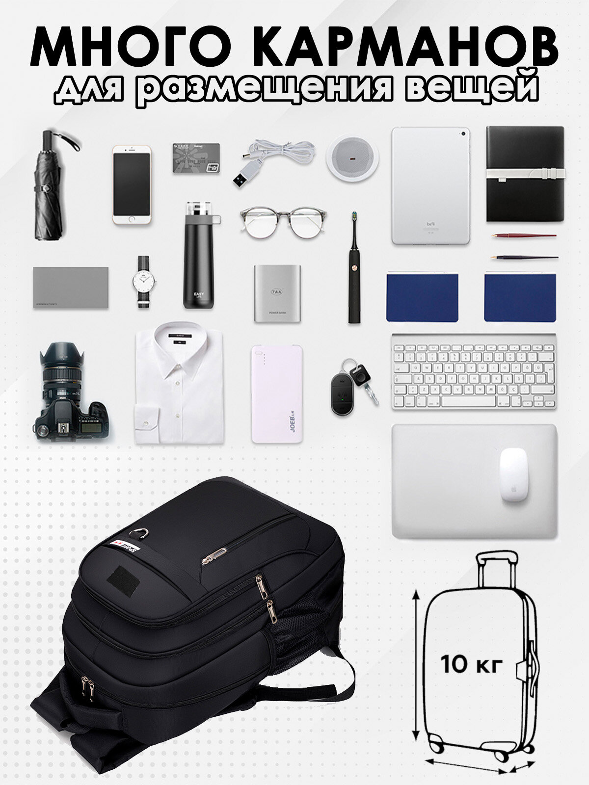 | Предметы | карман для документов, карман для очков, карман для телефона, крепление карабина для ключей, отделение для документов, отделение для ключей, отделение для ноутбука, потайной карман |