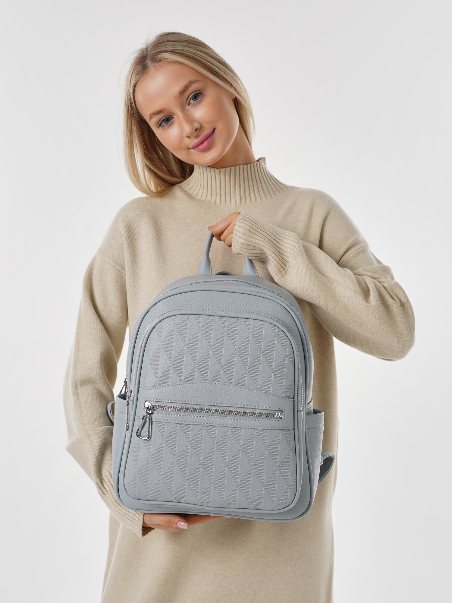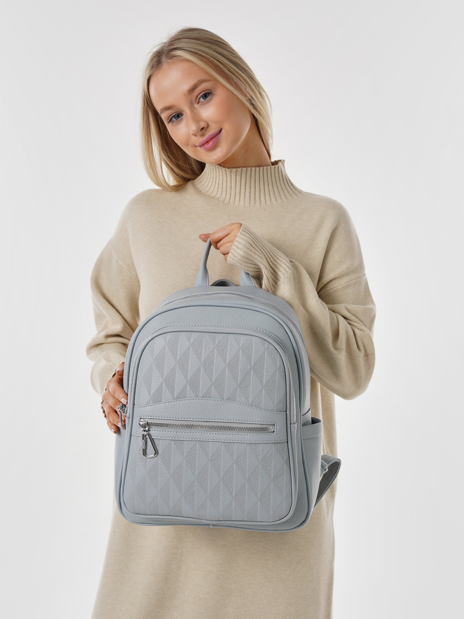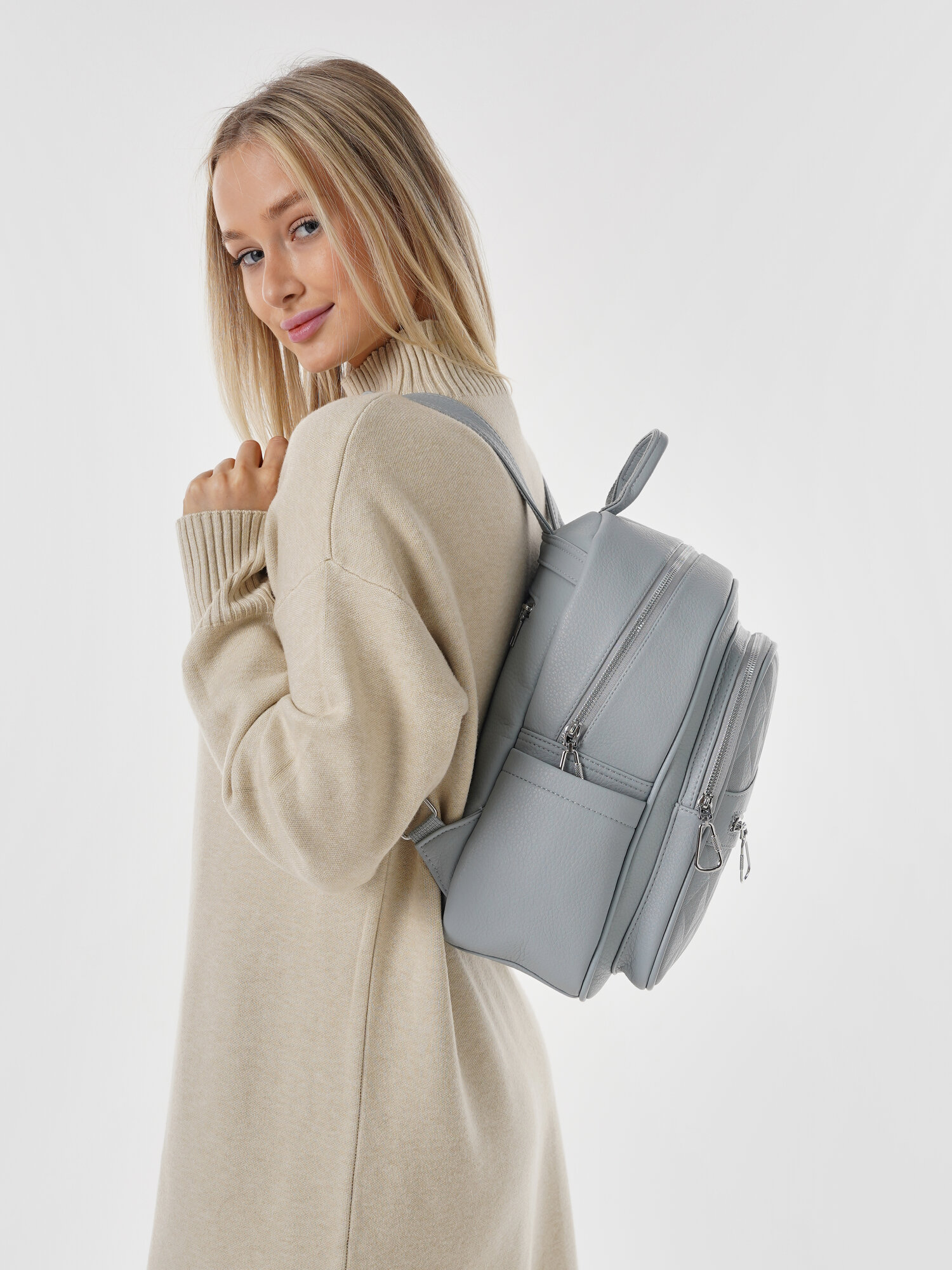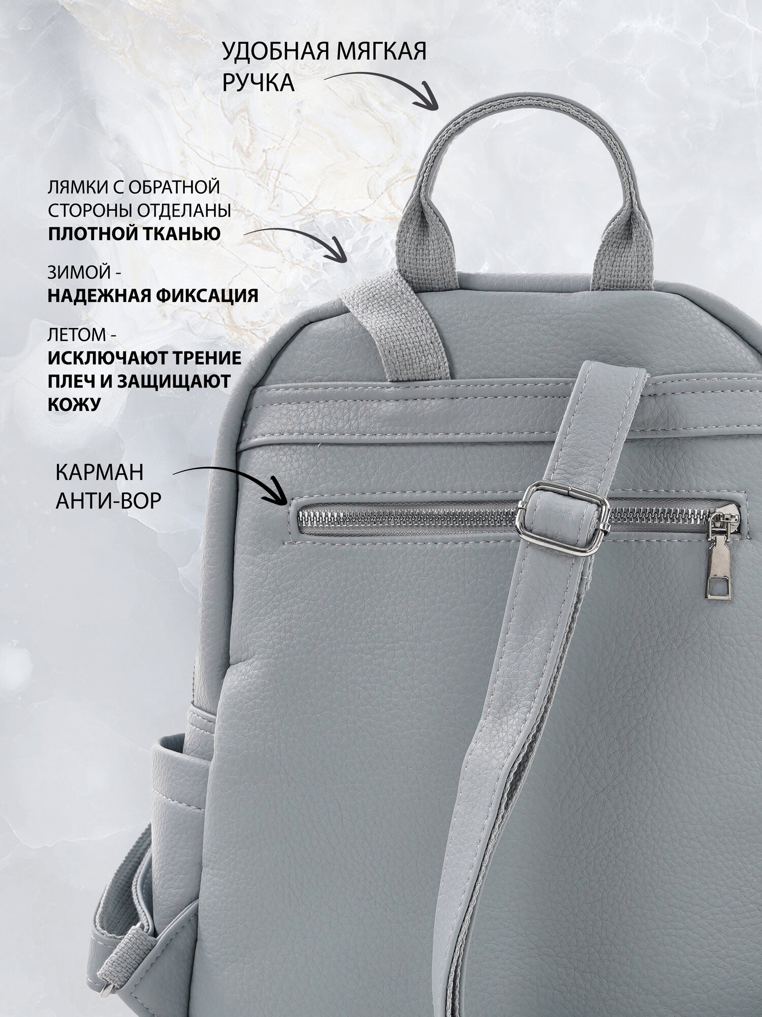 "Стильный женский светло-серый рюкзак из экокожи", бренд Shoshana