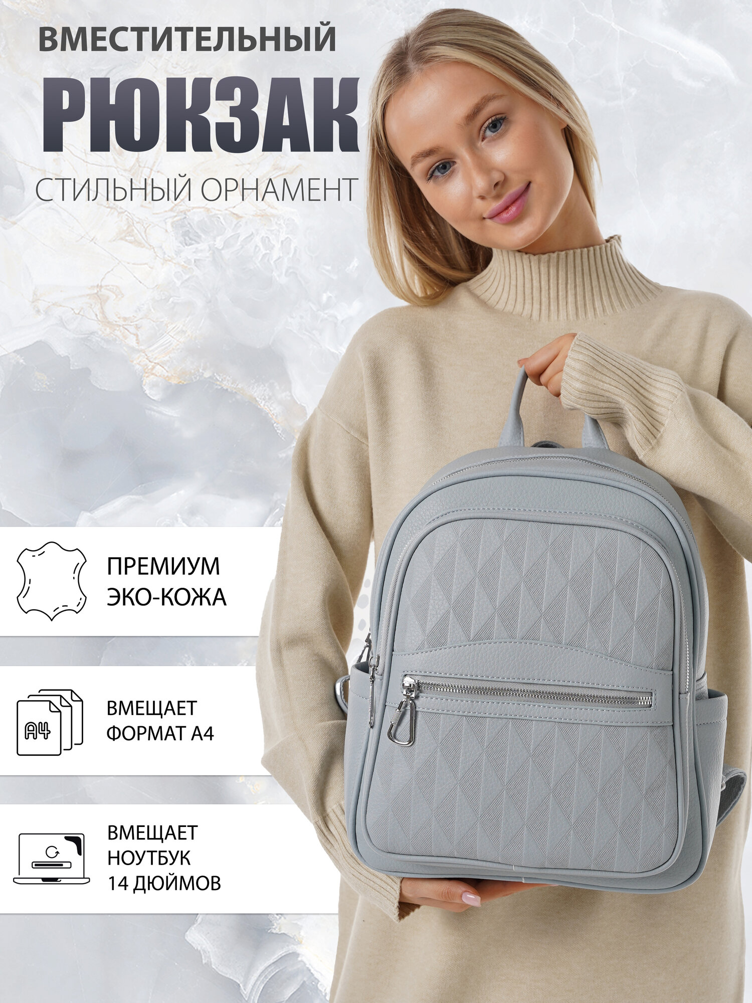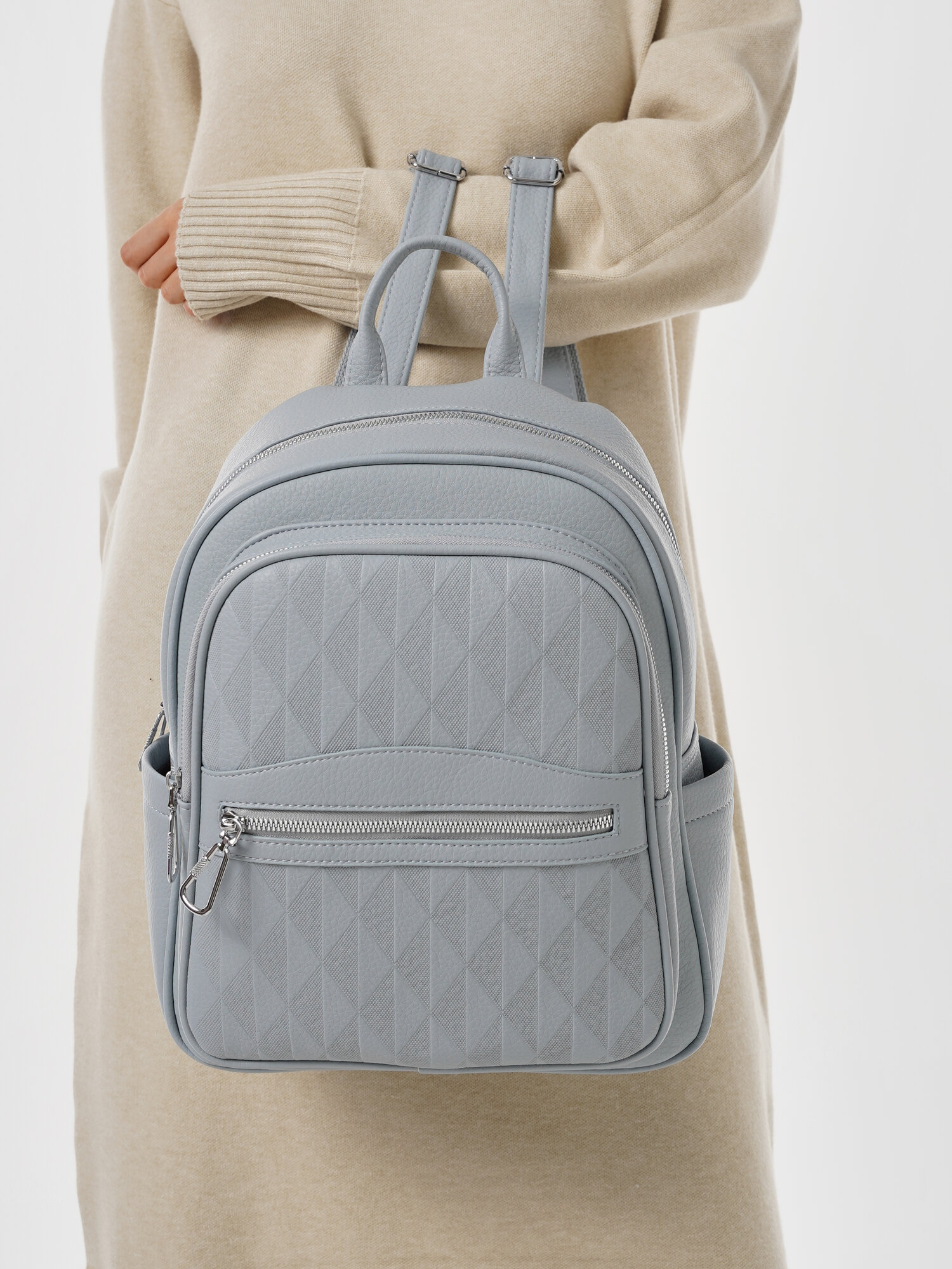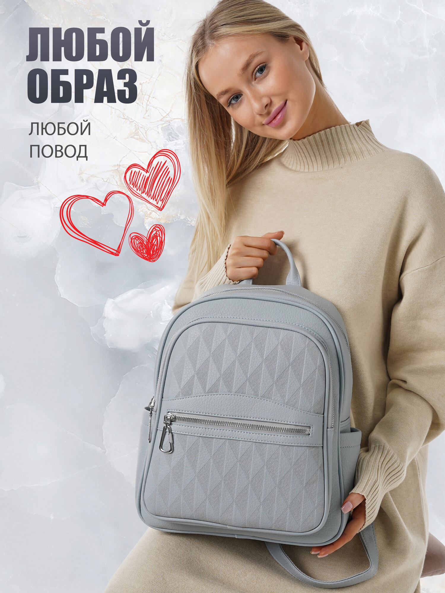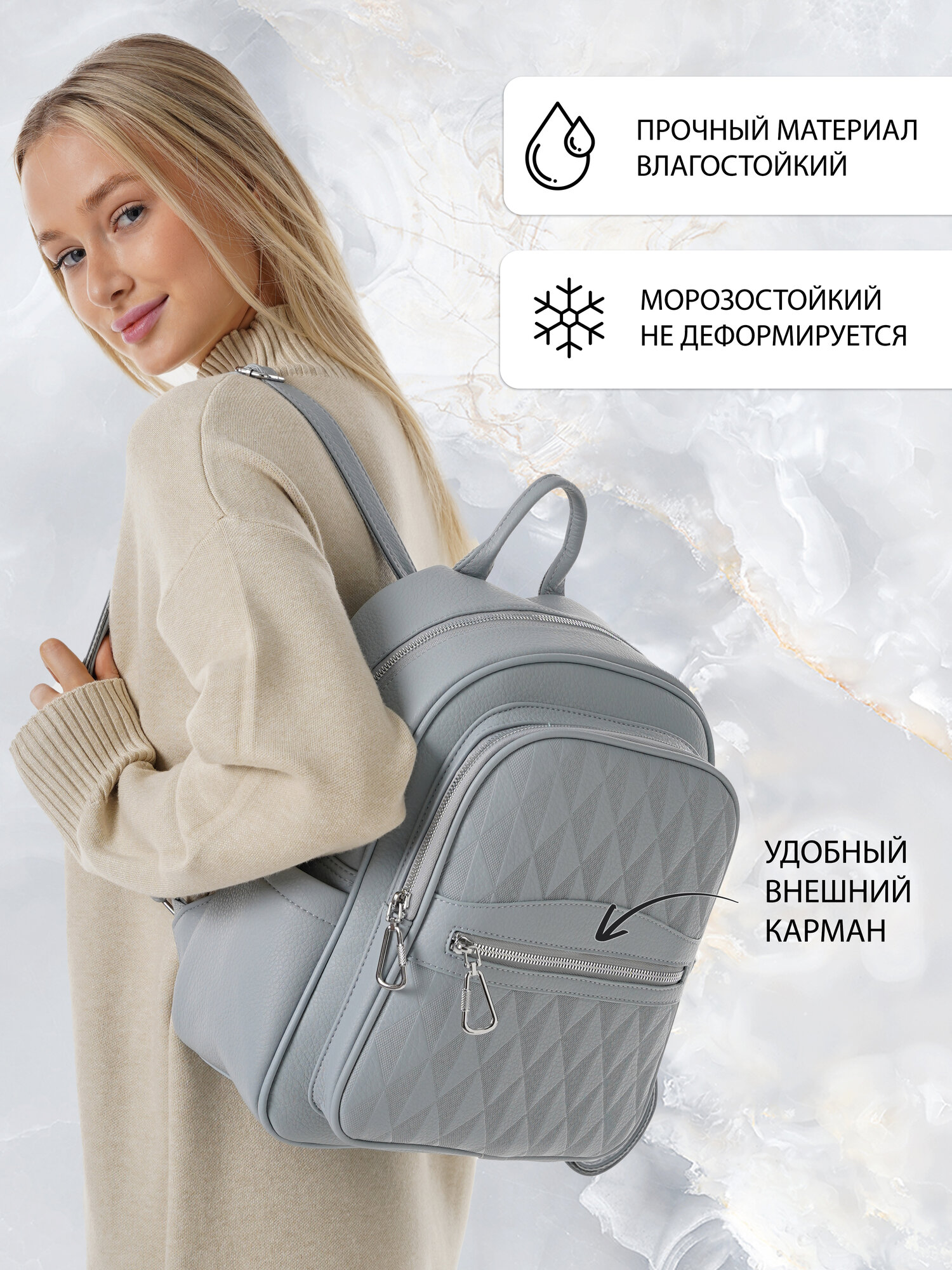 "Стильный женский светло-серый рюкзак из экокожи", бренд Shoshana