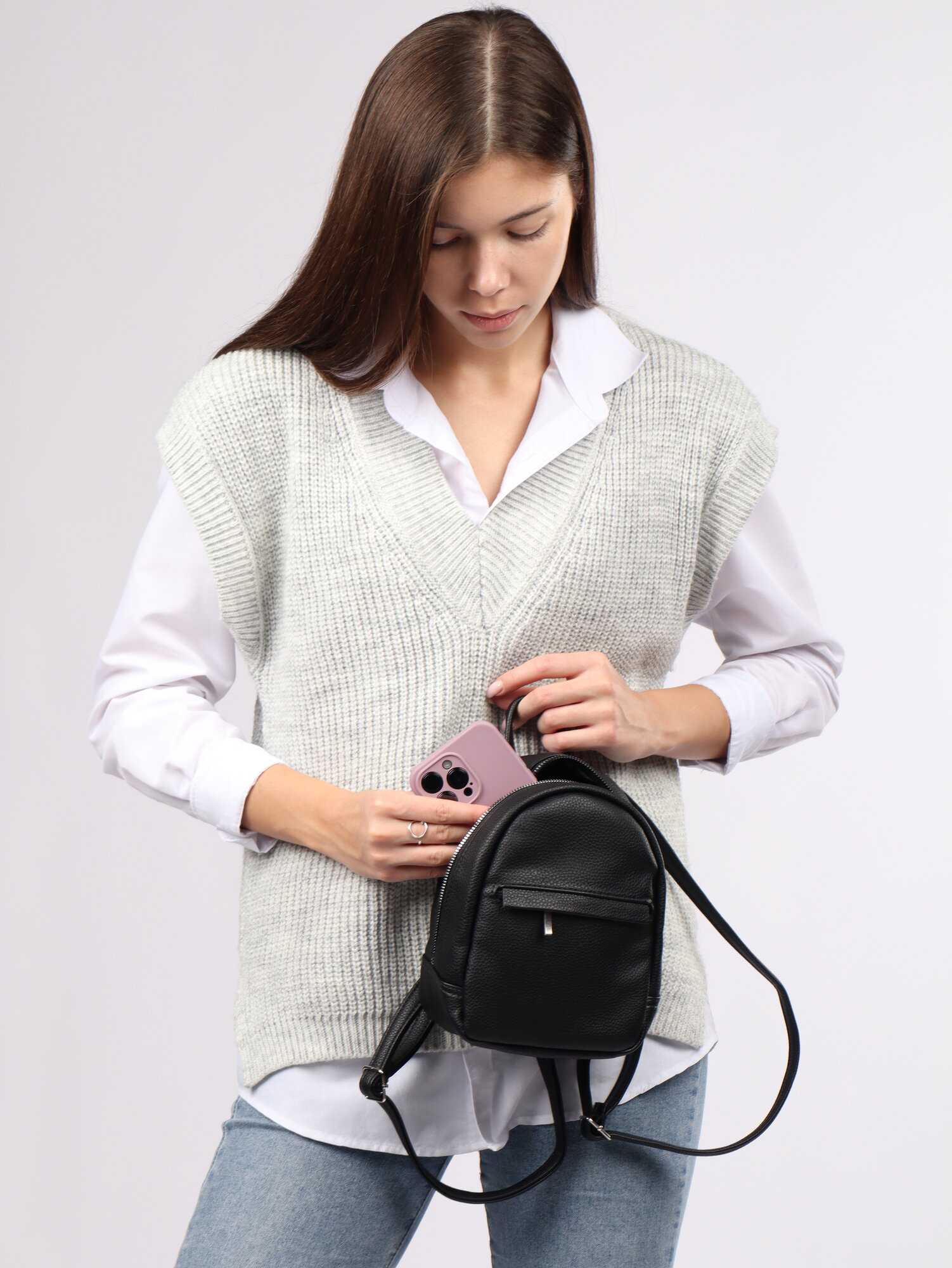 Женский городской рюкзак McKIR 21-138 экокожа черный молния под металл (мини-размер) интересное: