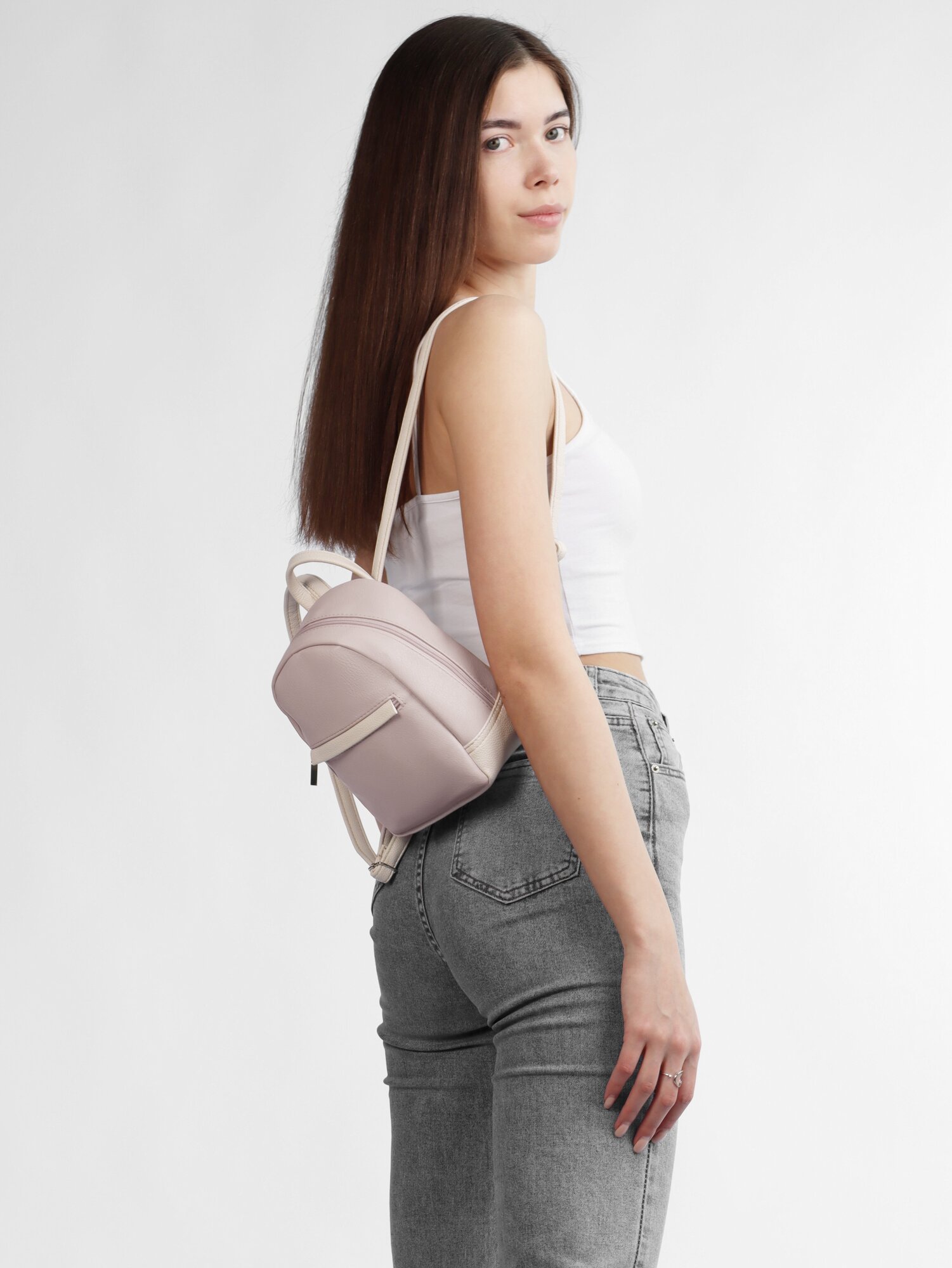 Женский городской рюкзак McKIR 21-138 экокожа пудра/беж (мини-размер) интересное: