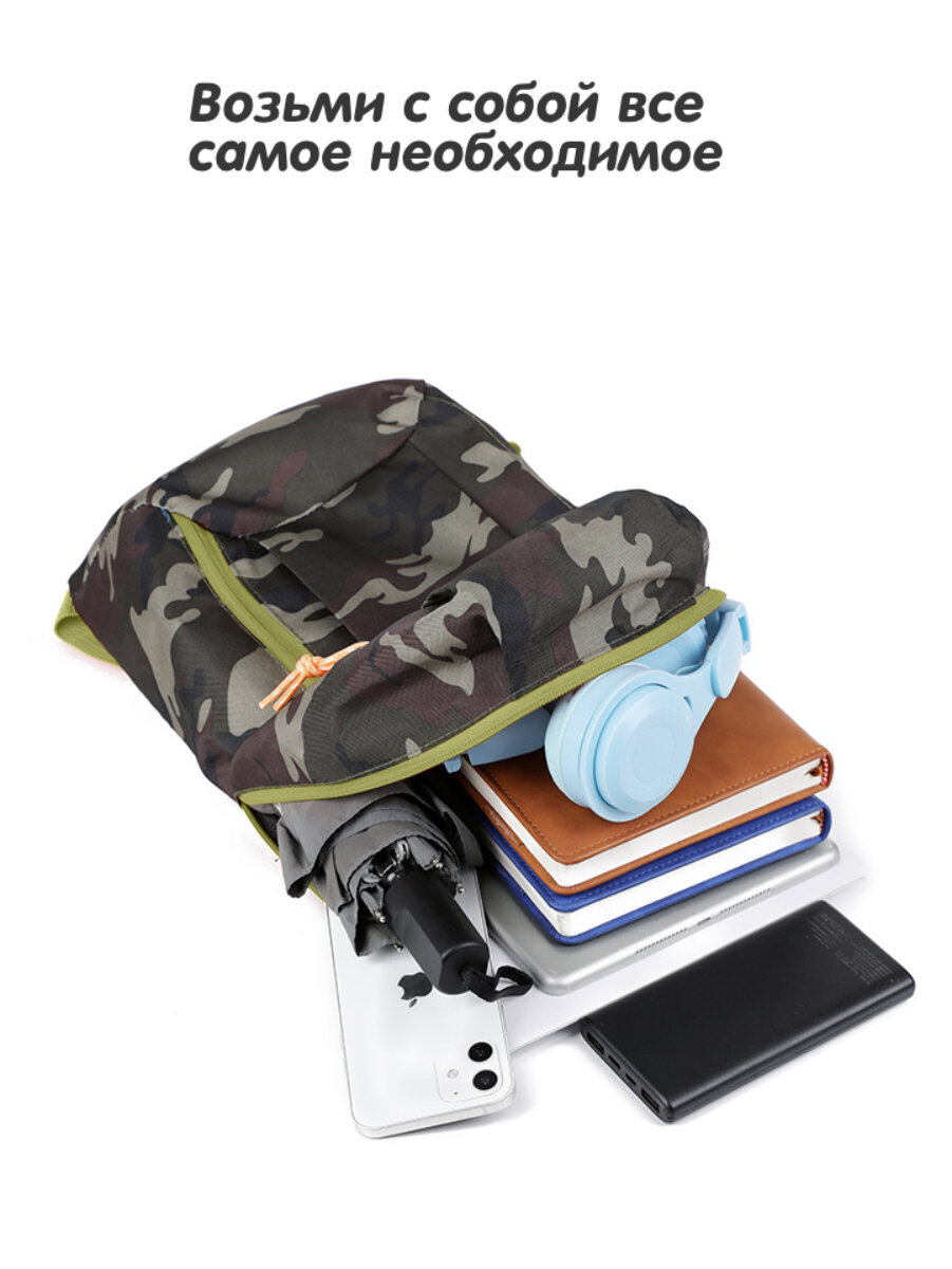 Рюкзак мужской городской спортивный маленький для обуви серый камуфляж