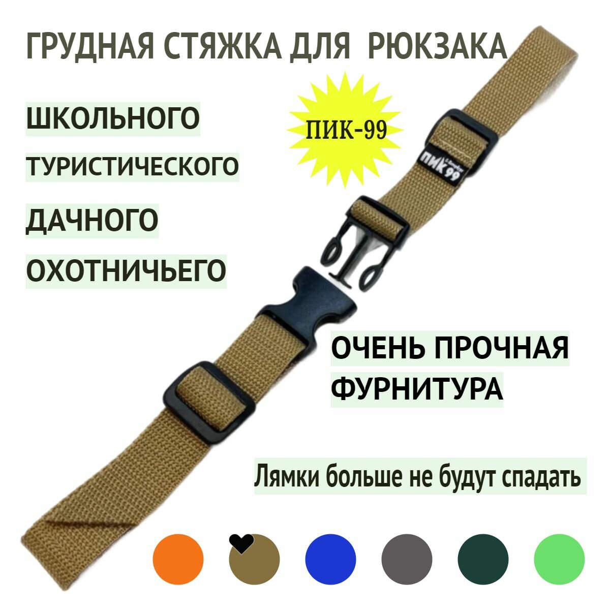 Грудная стяжка для рюкзака хаки