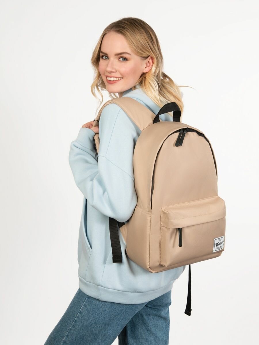 Купить Рюкзак городской спортивный женский мужской школьный для ноутбука, для мальчика для девочки, бежевый, черный