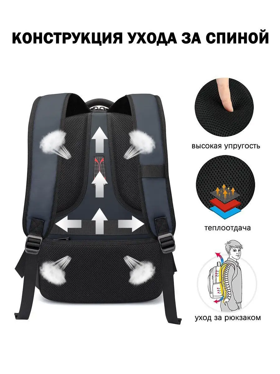 | Конструктивные особенности | USB-выход / антивор / боковые карманы / вентилируемые лямки / вентиляция спины / внутренний карман / перегородка в основном отделении |