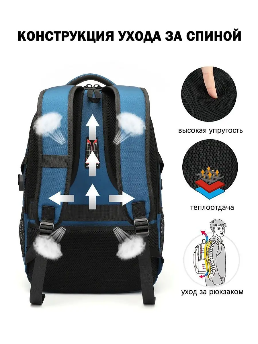 | Конструктивные особенности | USB-выход / антивор / боковые карманы / вентилируемые лямки / вентиляция спины / внутренний карман / перегородка в основном отделении |