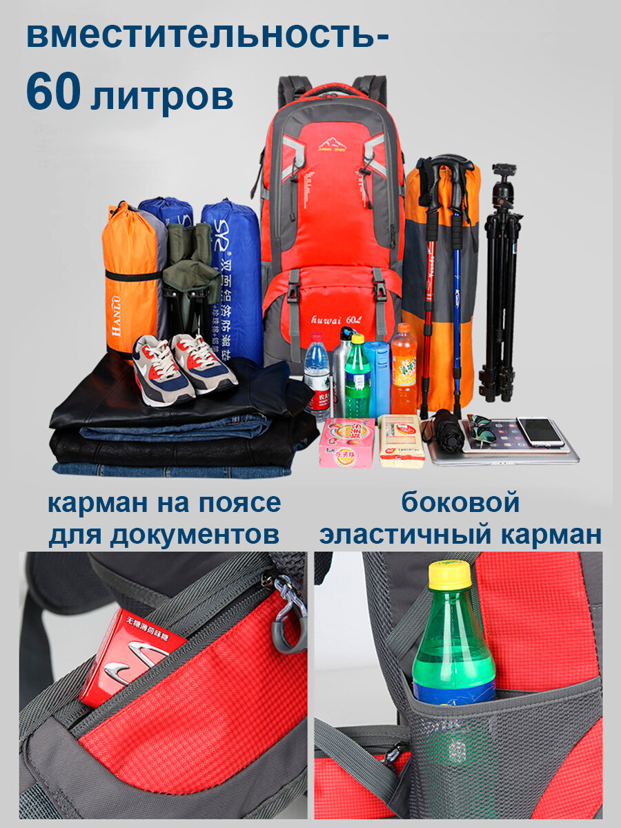 Рюкзак туристический трекинговый походный 60 литров красный интересное: