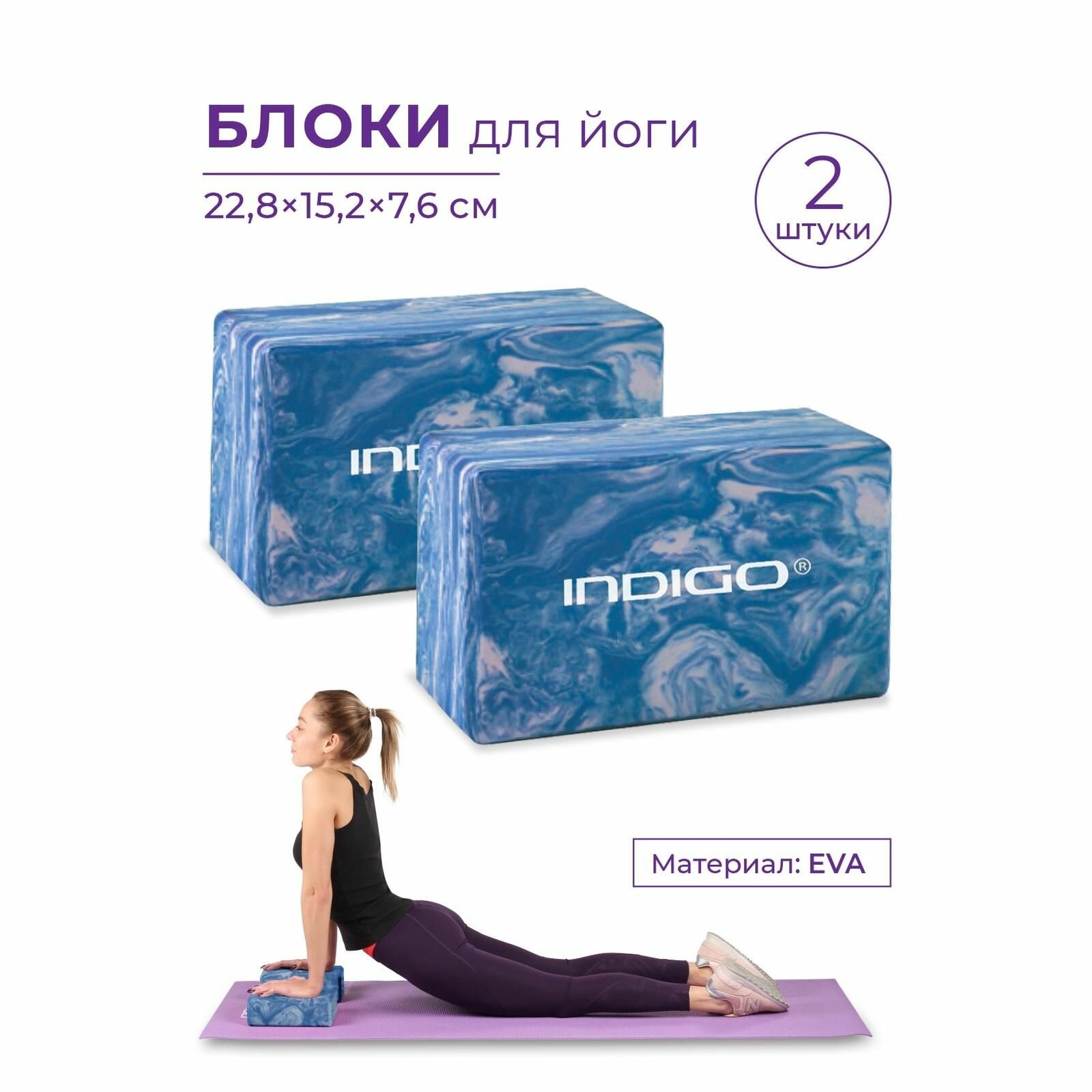 Блоки для йоги (набор 2шт), Кирпичи для фитнеса, Спортивные кубики для йоги INDIGO 22.8x15.2x7.6 Мраморный голубой интересное: