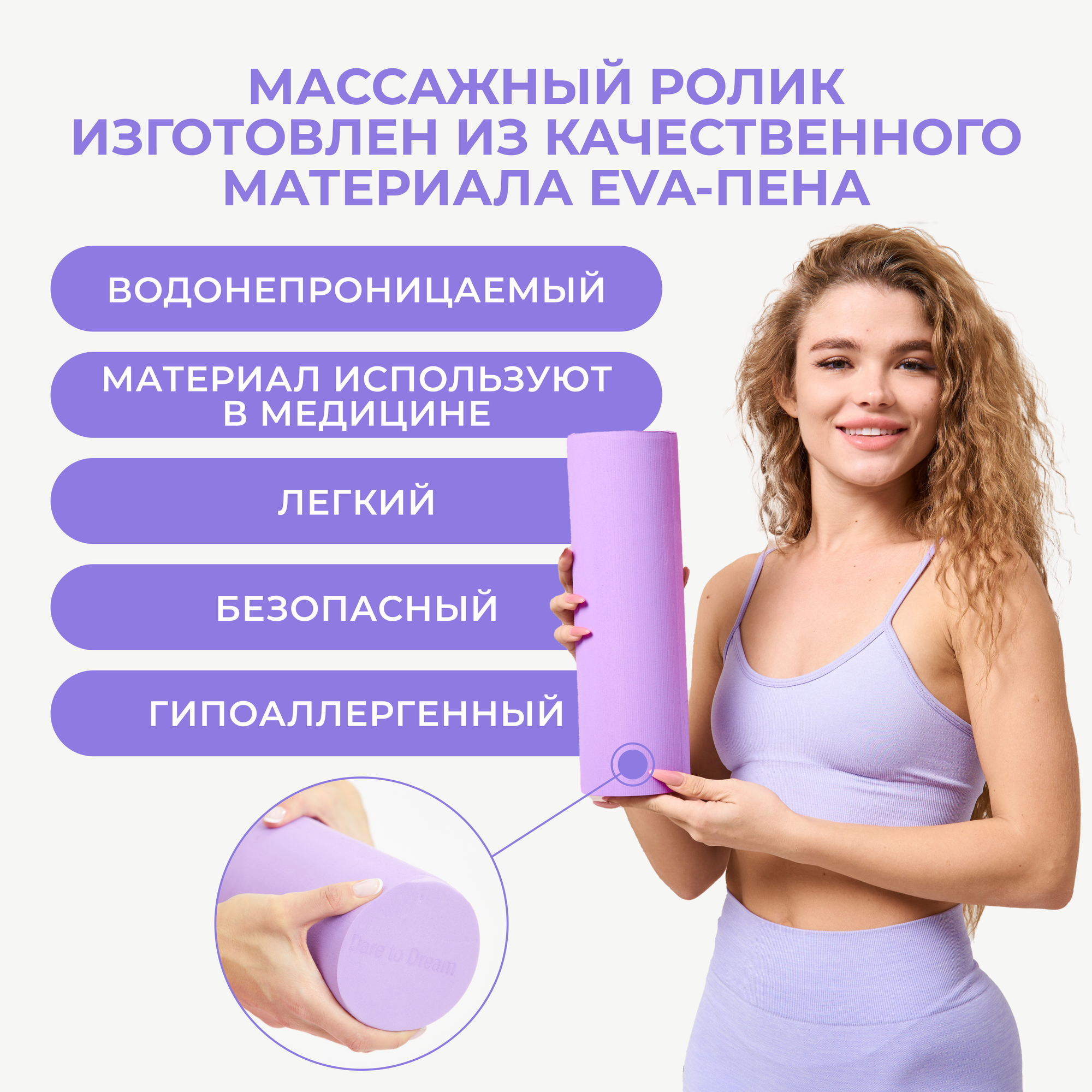 Купить Ролик массажный мягкий 33х10см для йоги, пилатеса и МФР, фиолетовый. Ролл для МФР, валик для спины, МФР ролл