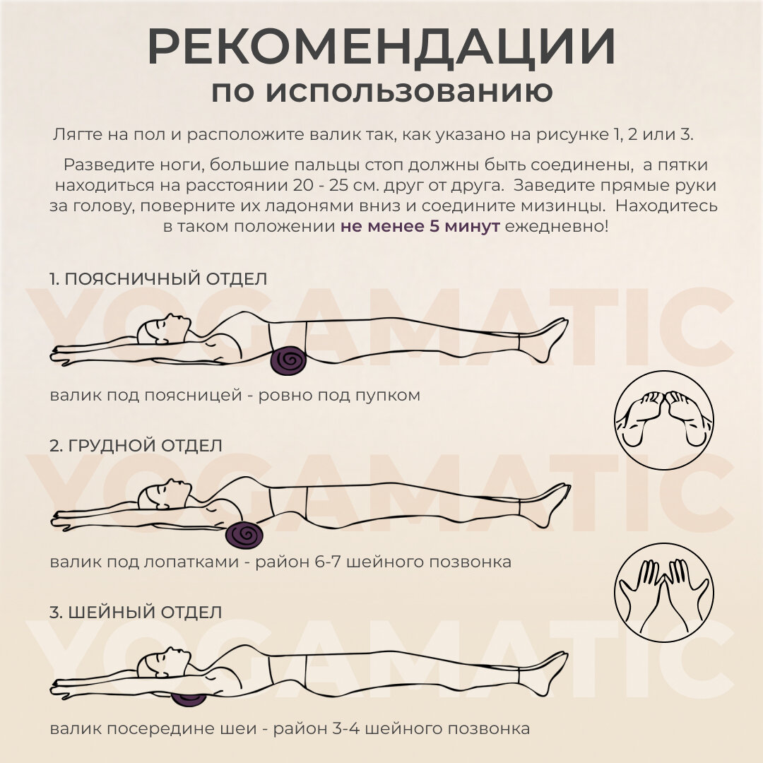 Валик массажный спортивный для спины, фитнеса, йоги - Арт Йогаматик, фиолетовый интересное: