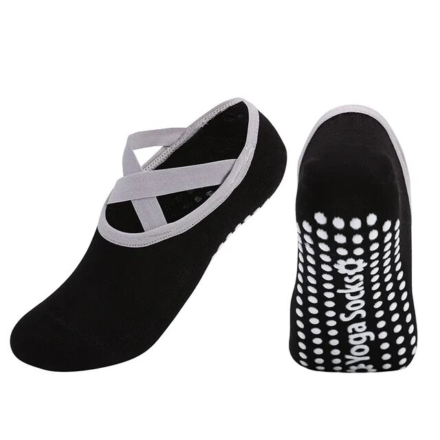Купить Носки противоскользящие для йоги фитнеса и пилатеса. Черные с лямками