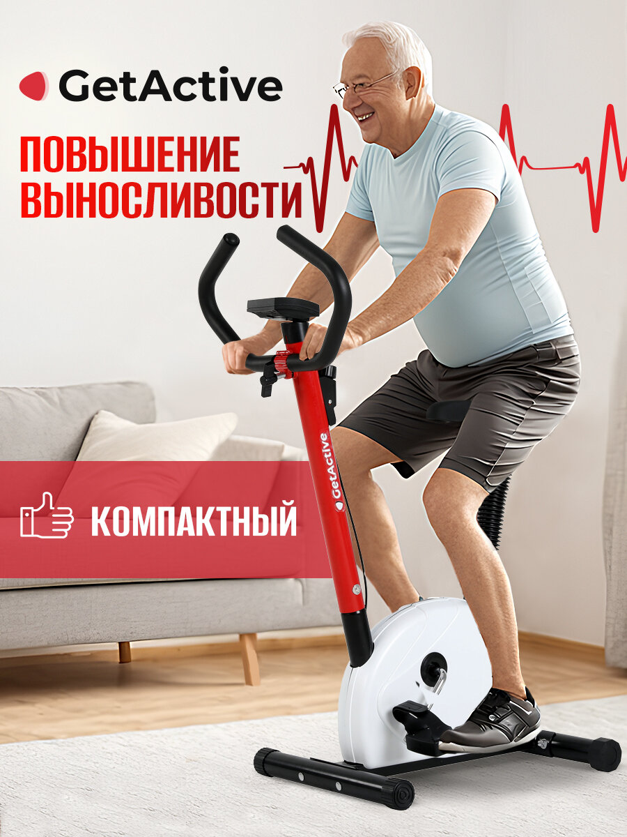 Купить Кардио велотренажер для дома GetActive Wheel ES-8001-W. Спортивный домашний тренажер-велосипед для похудения для ног и рук с сиденьем напольный