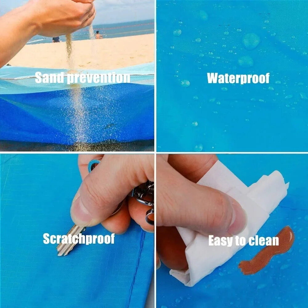 Купить Коврик туристический, коврик для пляжа и отдыха на природе, 190*190 см, водонепроницаемый, с фиксаторами, голубой