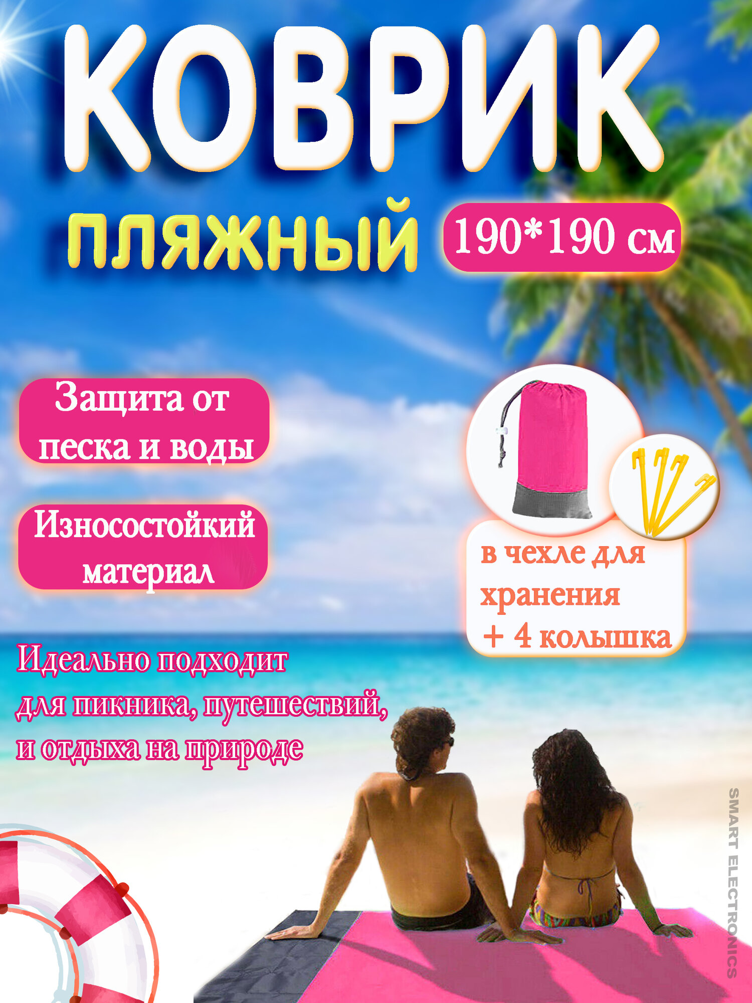 Коврик туристический, коврик для пляжа и отдыха на природе, 190*190 см, водонепроницаемый, с фиксаторами, розовый интересное: