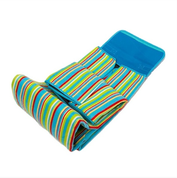Купить Коврик пляжный складной / Коврик-сумка для отдыха / Туристическое одеяло для пикника / Непромокаемый кемпинговый плед / 200х180 см / полоски